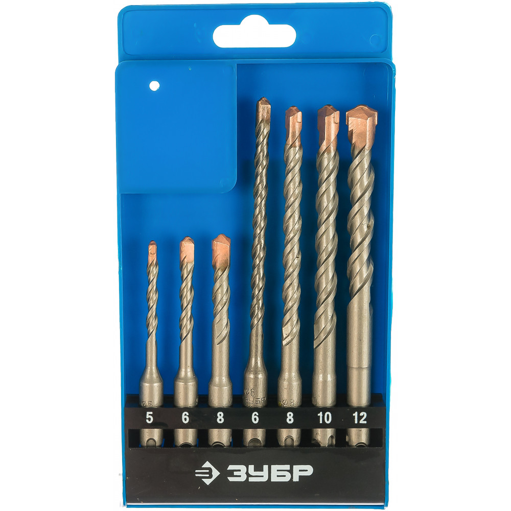 Зубр Набор буров по бетону, "SDS-Plus", дв. спираль, 5x110; 6x110; 6x160; 8x110; 8x160; 10x160; 12x160мм; 7шт 29314-H7