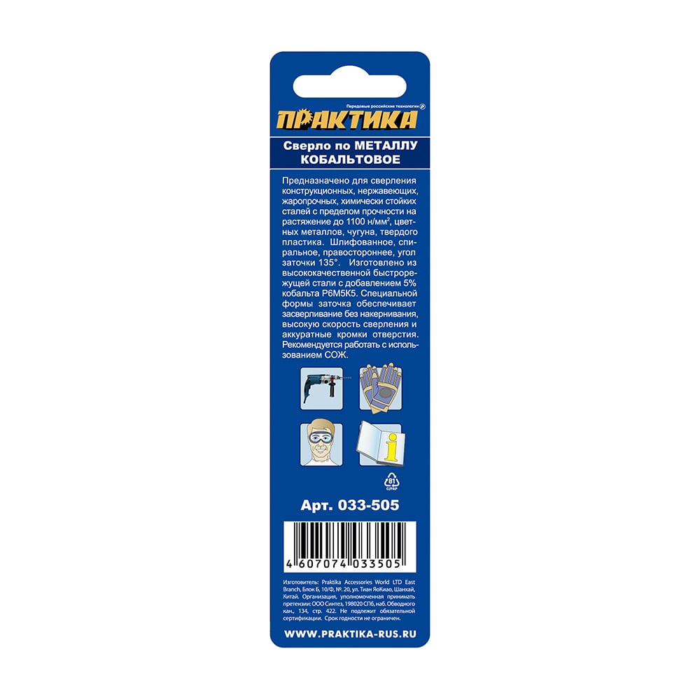 Сверло по металлу кобальтовое (5.5х93 мм) ПРАКТИКА 033-505