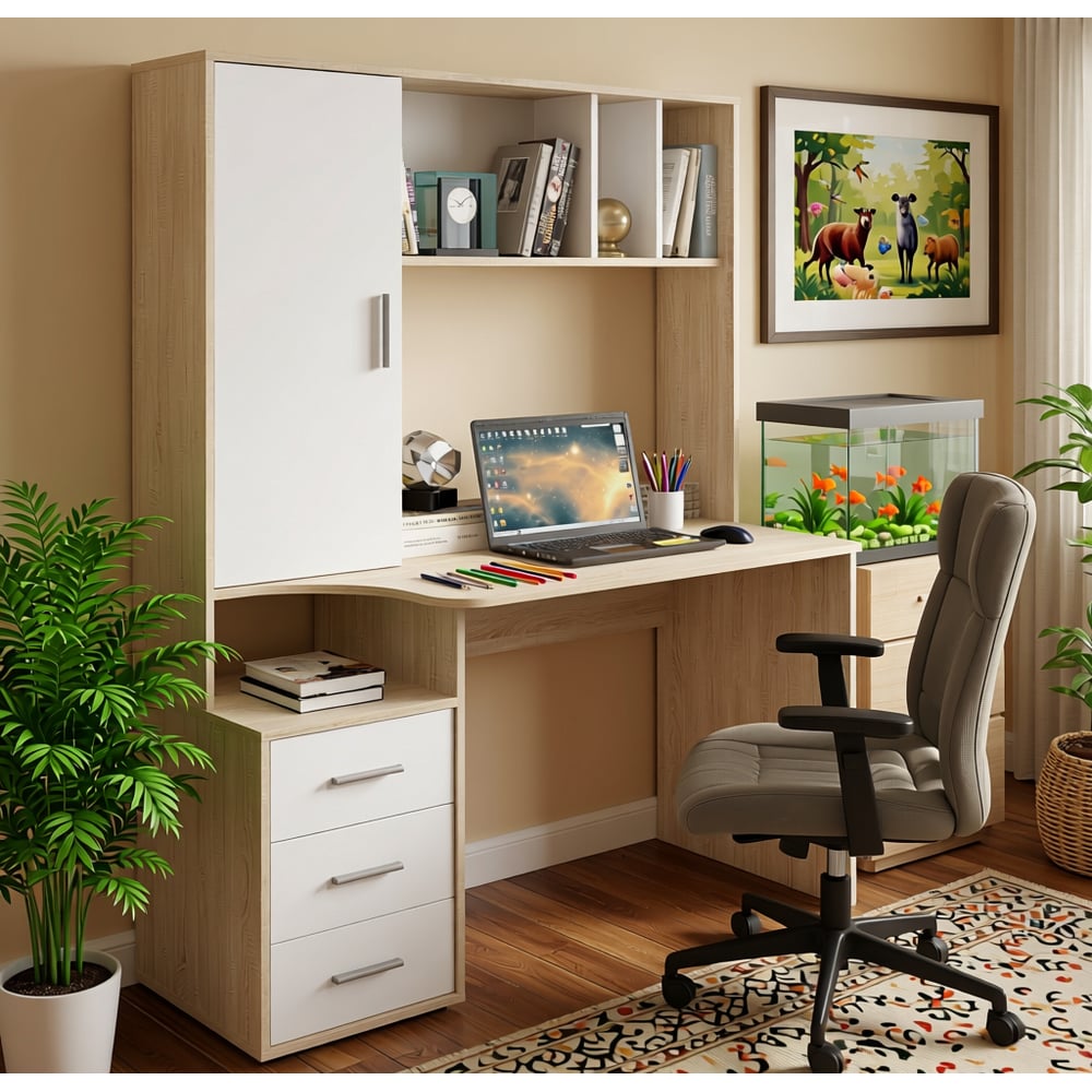 Компьютерный стол СОКОЛ дуб сонома/белый КСТ-16 КСТ16С5б6