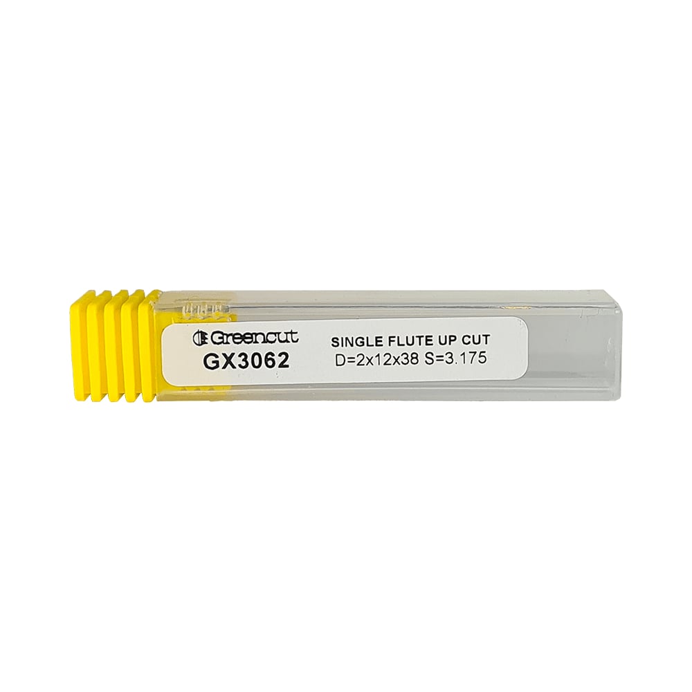 Фреза спиральная однозаходная верхний рез для ЧПУ (2x12x38 мм; S=3.175 мм; Z1) Greencut GX3062