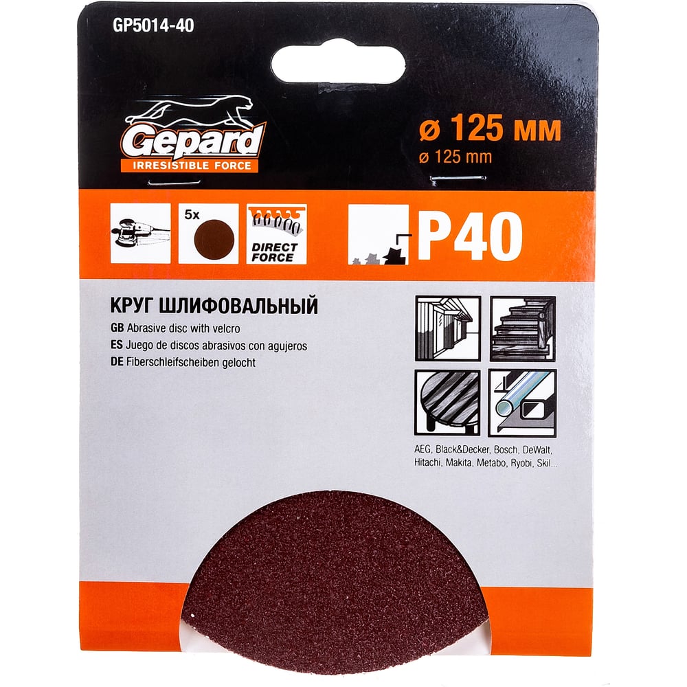 Шлифлист круглый самосцепляющийся 5 шт, 125 мм, Р40 Gepard GP5014-40