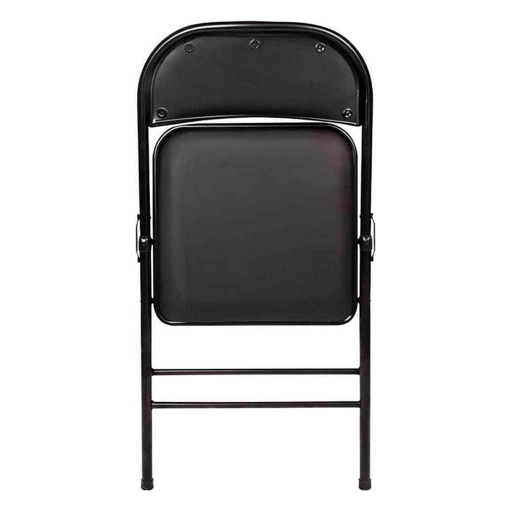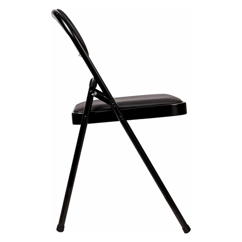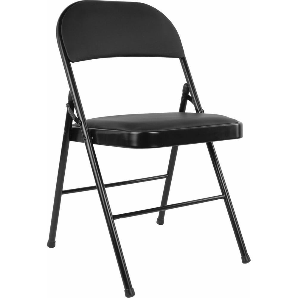 Стиль классический Подлокотники нет Max нагрузка 110 кг Материал обивки искусственная кожа Складной да Высота сиденья 300 мм Материал каркаса металл Высота стула 810 мм Ширина стула 440 мм Глубина стула 480 мм Цвет обивки черный Цвет каркаса черный Регулировка по высоте нет Спинка есть Полозья нет