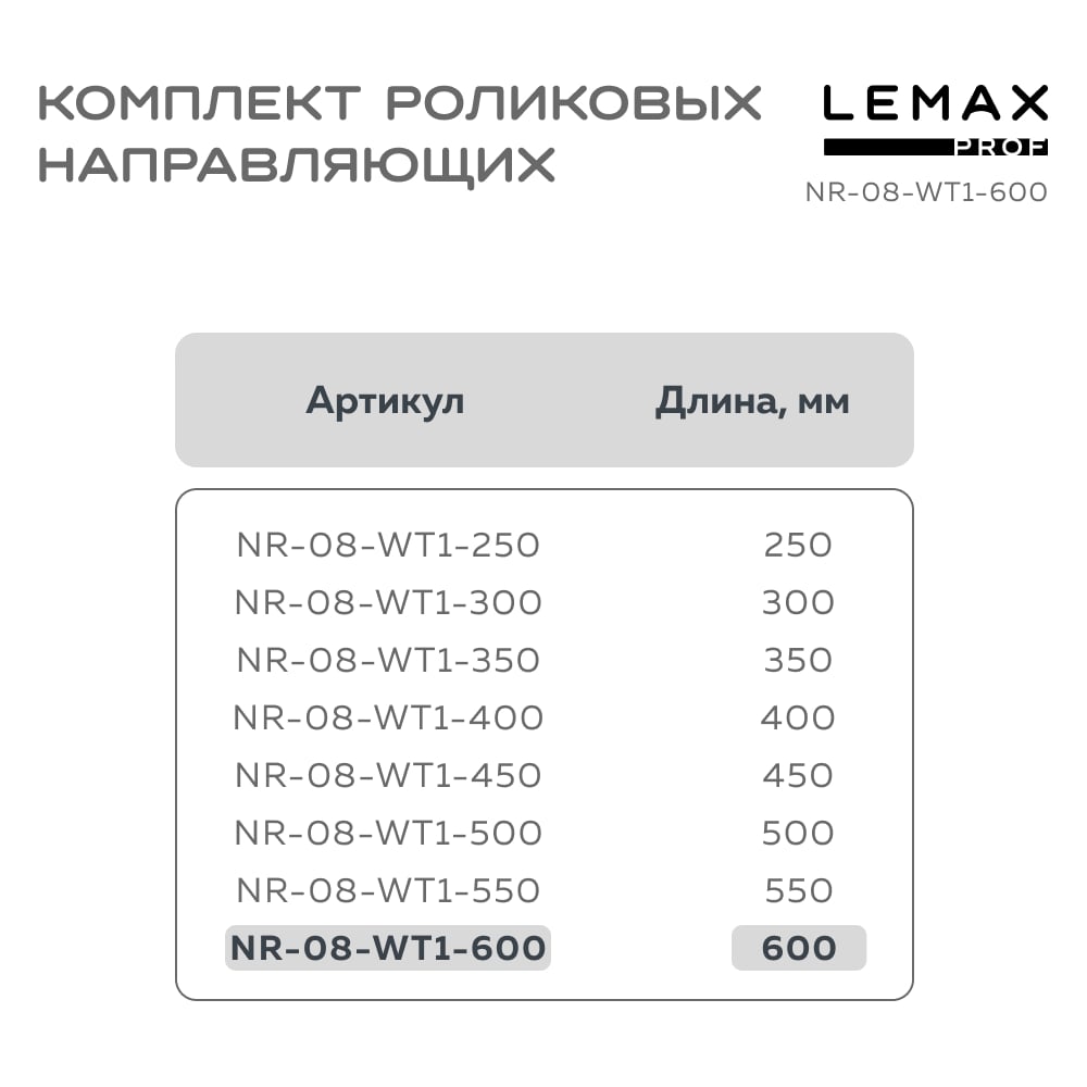 Роликовые направляющие Lemax PROF NR-08-WT1-600