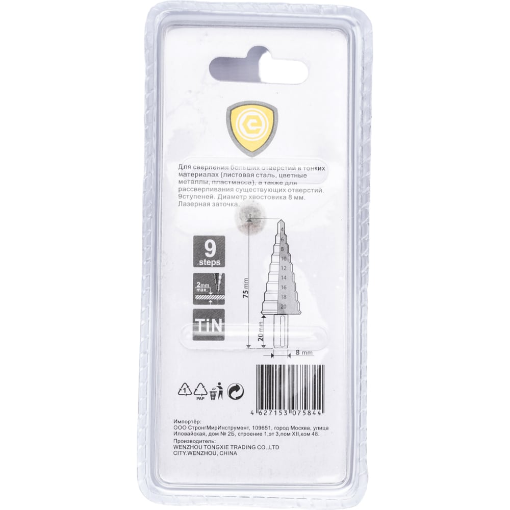 | Диапазон диаметров ступенчатых сверл | 4-20 мм |