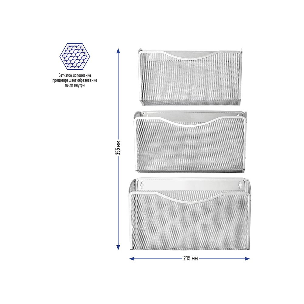 Настенный набор BERLINGO Steel&Style из 3 металлических лотков, А4, серебристый BMs_41931