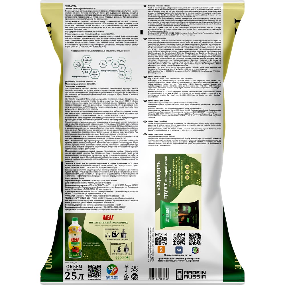 Грунт Terra Vita Живая Земля универсальный 25 л 4601104981453