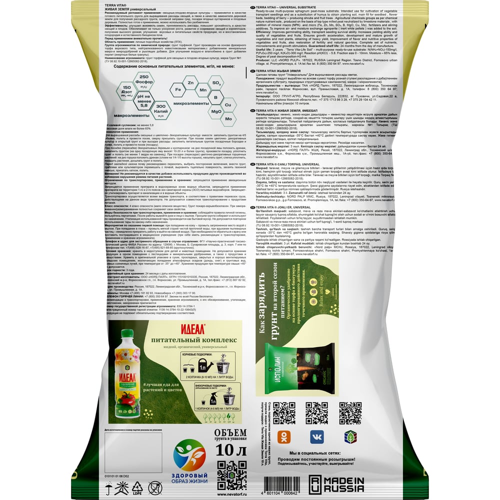 Грунт Terra Vita Живая Земля универсальный 10 л 4601104000642