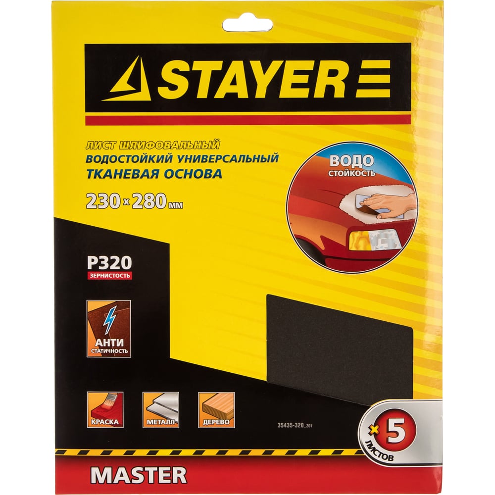 Шлифлист универсальный водостойкий 5 шт. (230х280 мм; Р320) Stayer 35435-320_z01