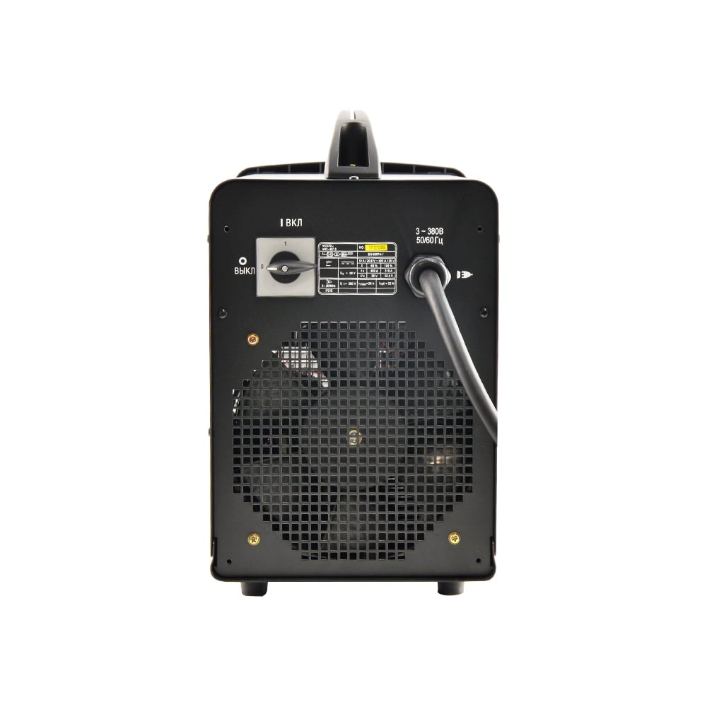 Габариты без упаковки 460х220х410 мм Тип инвертор Класс товара Профессиональный Вес нетто 13.4 кг Степень защиты IP21S Напряжение 380 В Max ток 400 А Дисплей да Кейс нет Антизалипание да Горячий старт регулируемый Форсаж дуги регулируемый Max мощность 18.2 кВт Min ток 15 А ПВ на максимальном токе 60 % Напряжение холостого хода 67 В TIG сварка нет Мин. диаметр электрода 2 мм Мах. диаметр электрода 6 мм Min входное напряжение 320 В Наличие сетевой вилки есть Сертификат Накс нет Наличие синергии нет Режим работы DC Рабочая температура окружающей среды от +10 до +40 °С Наличие пульта ДУ нет С пуско-зарядным устройством нет Наличие цифрового индикатора сварочного тока нет