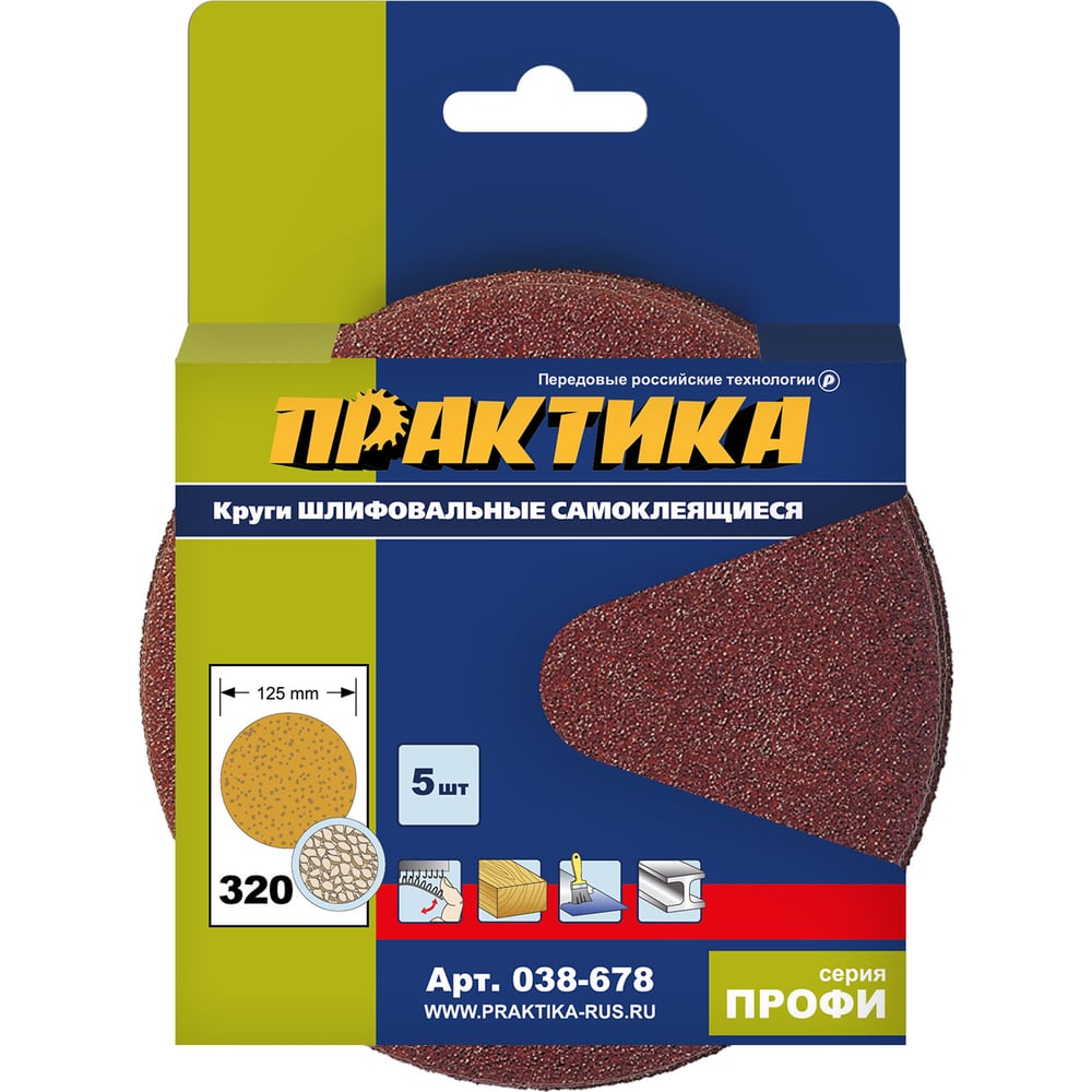 Круг шлифовальный на липкой основе (5 шт; 125 мм; Р320) ПРАКТИКА 038-678