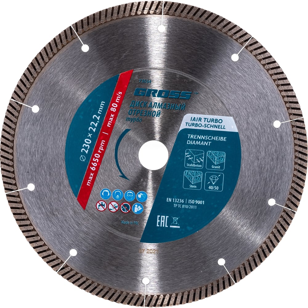 Диск алмазный турбо с лазерной перфорацией (230х22.2 мм) GROSS 73034