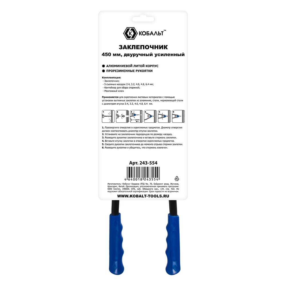 | Размер заклепок | 2.4; 3.2; 4.0; 4.8; 6.4 мм |