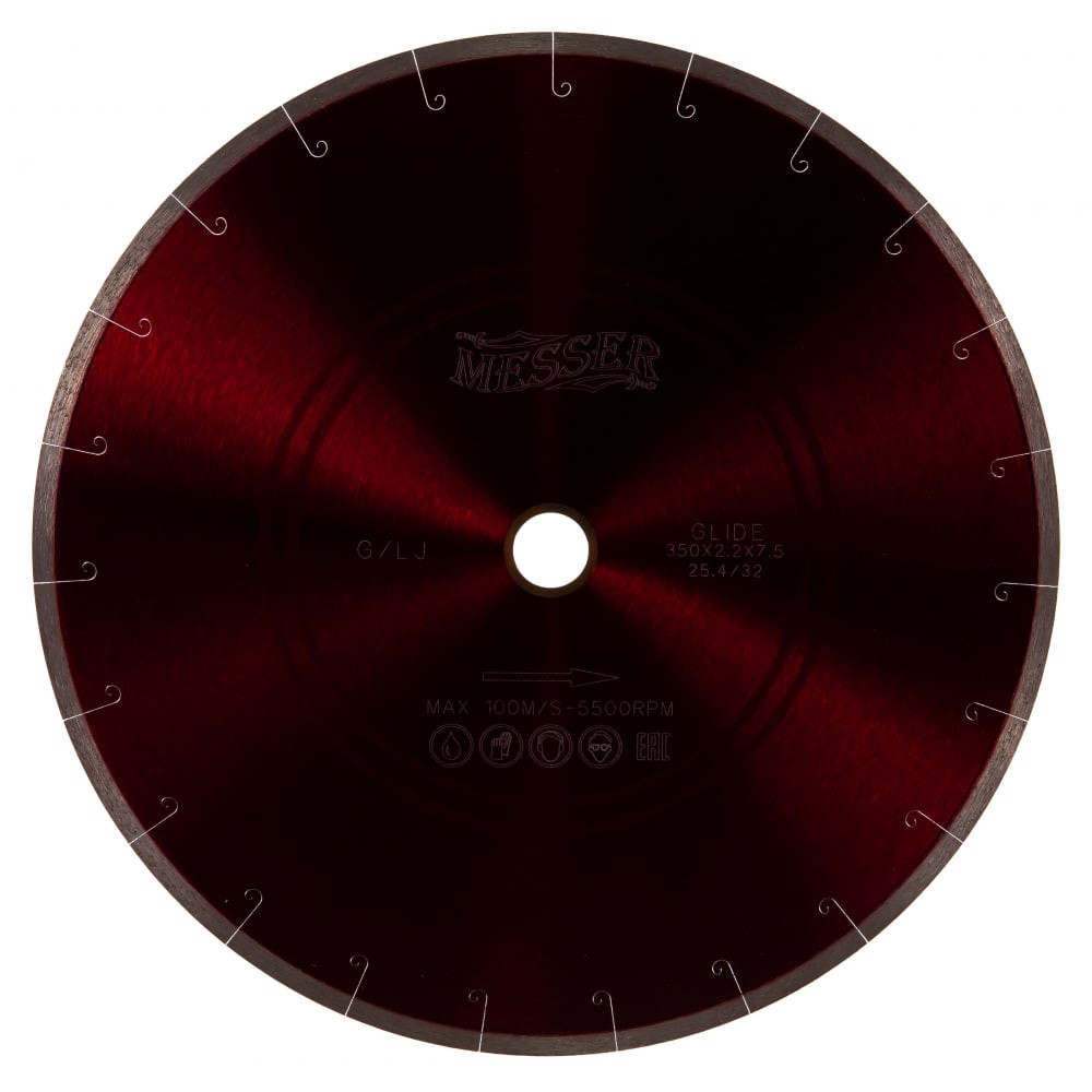 MESSER диск алмазный сплошная кромка с микропазом G/L J-slot по граниту, для работы с подачей воды, 350D-2.2T-7.5W-32\25.4 01-24-350