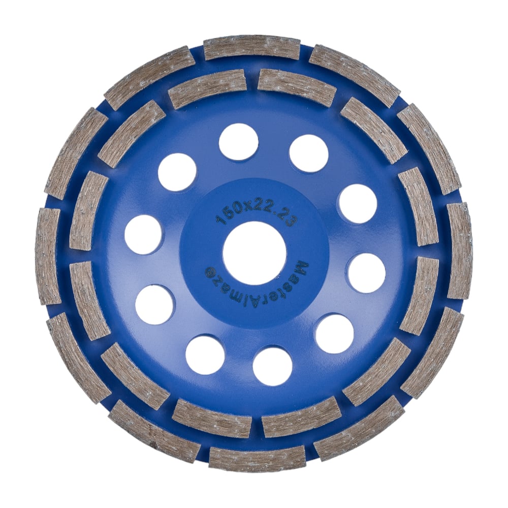 Габариты без упаковки 150х22.23 мм Вид чашка алмазная Тип двухрядный Вес нетто 0.62 кг Диаметр 150 мм Посадка 22.2 мм