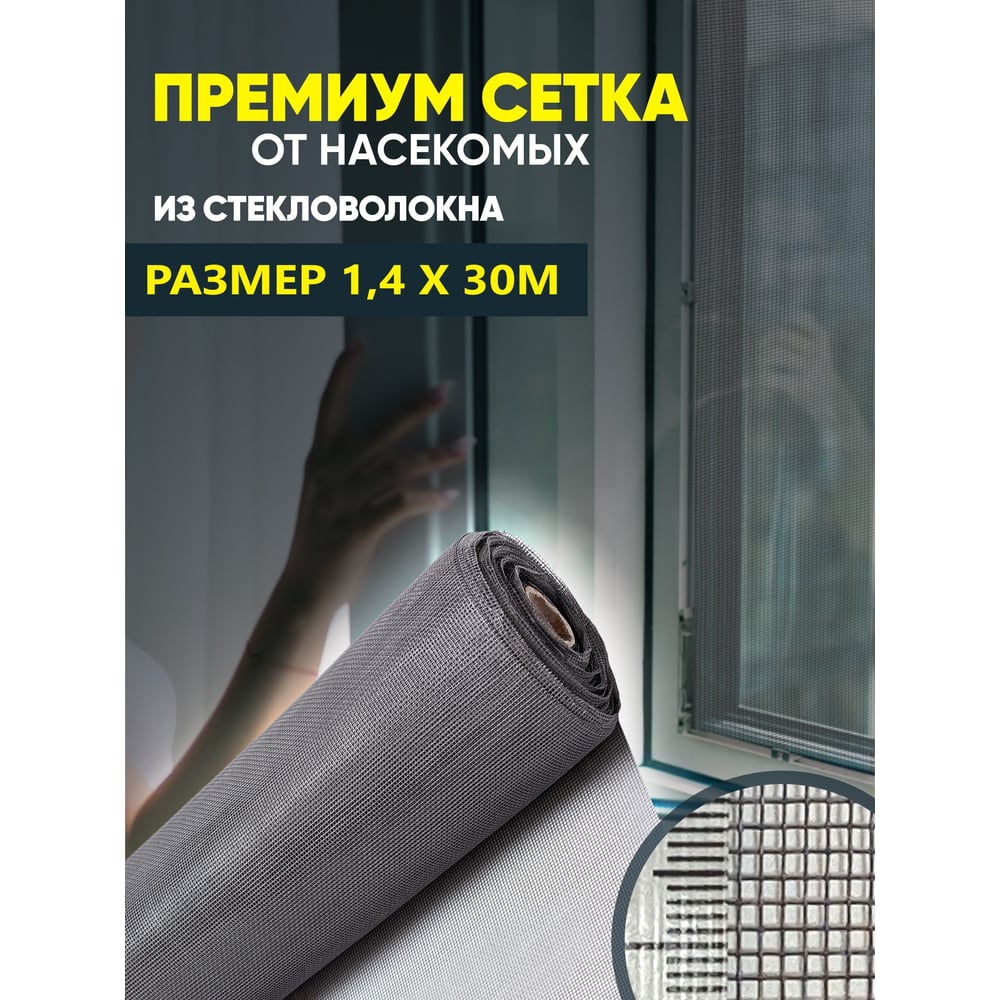 Сетка от насекомых "Премиум" из стекловолокна ComeForte 1,4мх30м/16х14 цвет серый 100гр/м2 CC002452
