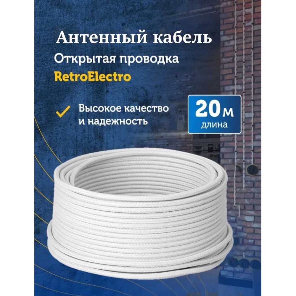 Кабель Retro Electro, ретро, TV, белый, длина бухты 20 2254743