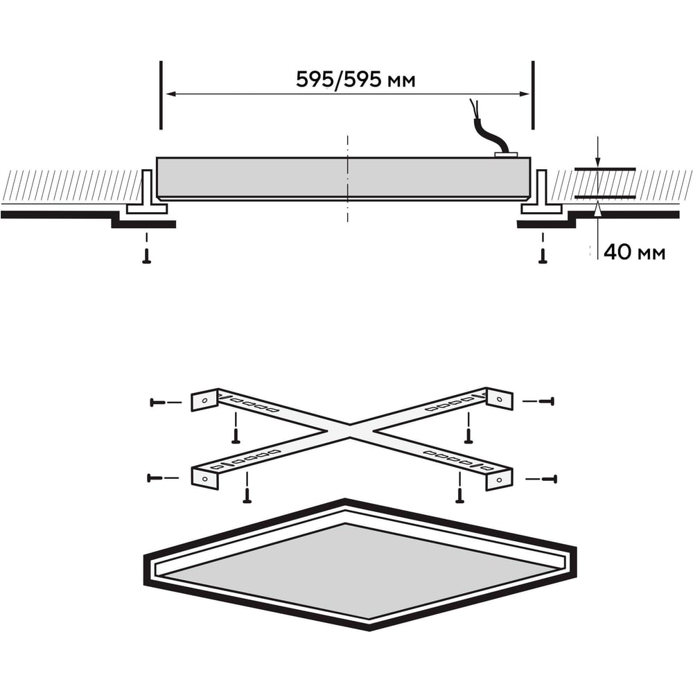 Габариты без упаковки 595x595x40 мм Тип встраиваемый/накладной Поверхность плафона/арматуры матовая/матовая Вес нетто 1.95 кг Мощность светильника 36 Вт Цоколь встроенные светодиоды Тип лампы встроенные светодиоды Цветность естественный белый (3300-5000 К) Напряжение питания 180-265 В Защита от пыли и влаги IP54 Материал корпуса сталь Материал плафона полистирол Вид крепления встраиваемый/накладной/подвесной Цвет плафона белый Форма квадратный Длина 59.5 см Ширина 59.5 см Световой поток 3960 Лм Цветопередача >90 Ra Тип колбы нет Срок службы 30000 ч Высота 4 см Провод провод без вилки Основной цвет белый Драйвер в комплекте да Лампа/светодиоды в комплекте есть Установочный размер 595 мм Тип рассеивателя Опал Протокол управления отсутствует
