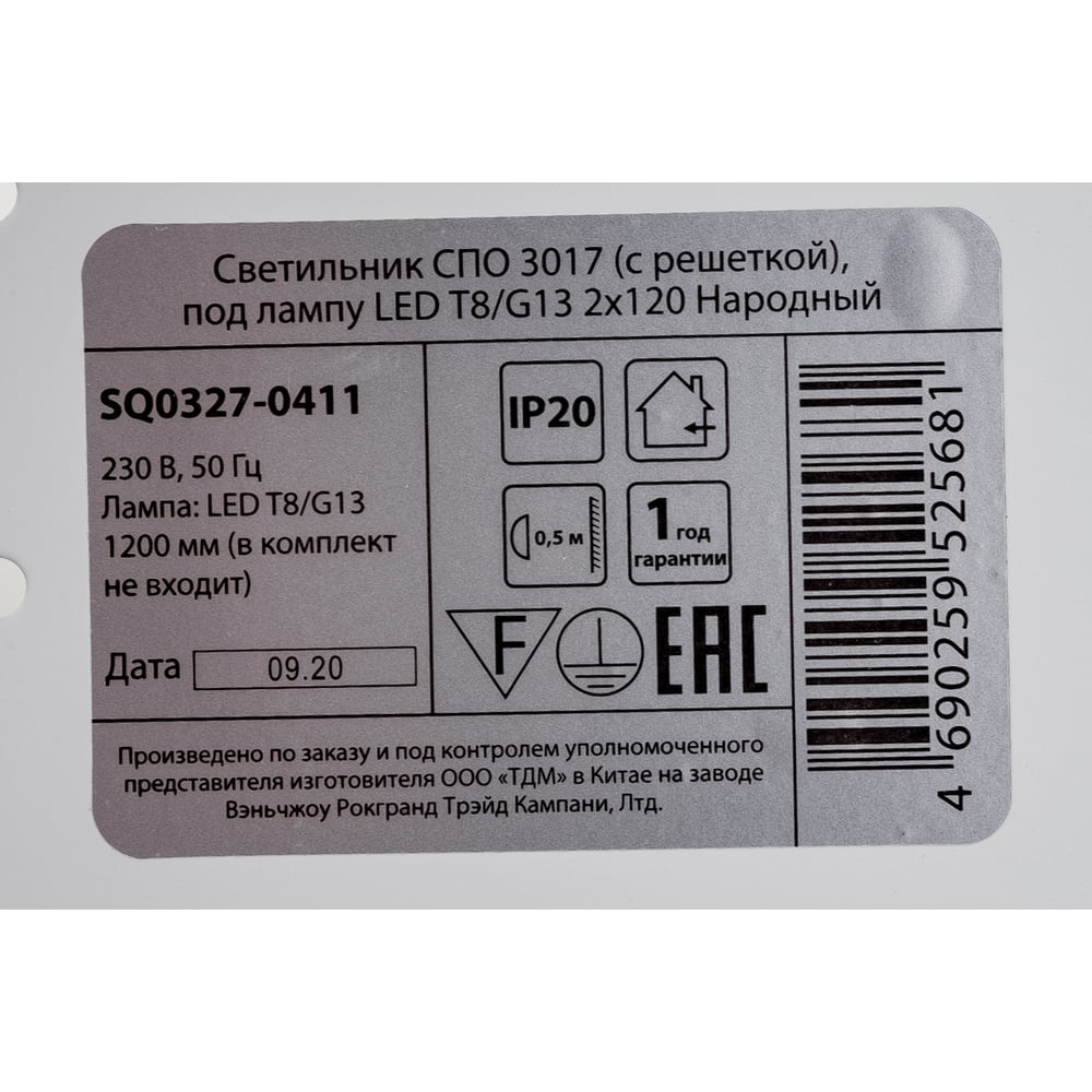 Светильник TDM ELECTRIC СПО 3017 с решеткой, под лампу LED Т8/G13 2х120 Народный SQ0327-0411