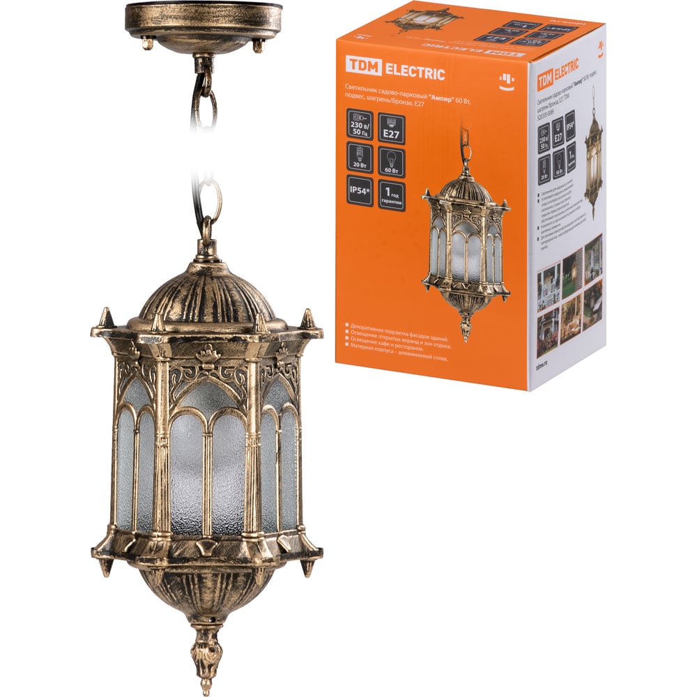 Садово-парковый светильник TDM ELECTRIC "Ампир" 60 Вт, подвес шагрень/бронза Е27, SQ0330-0089