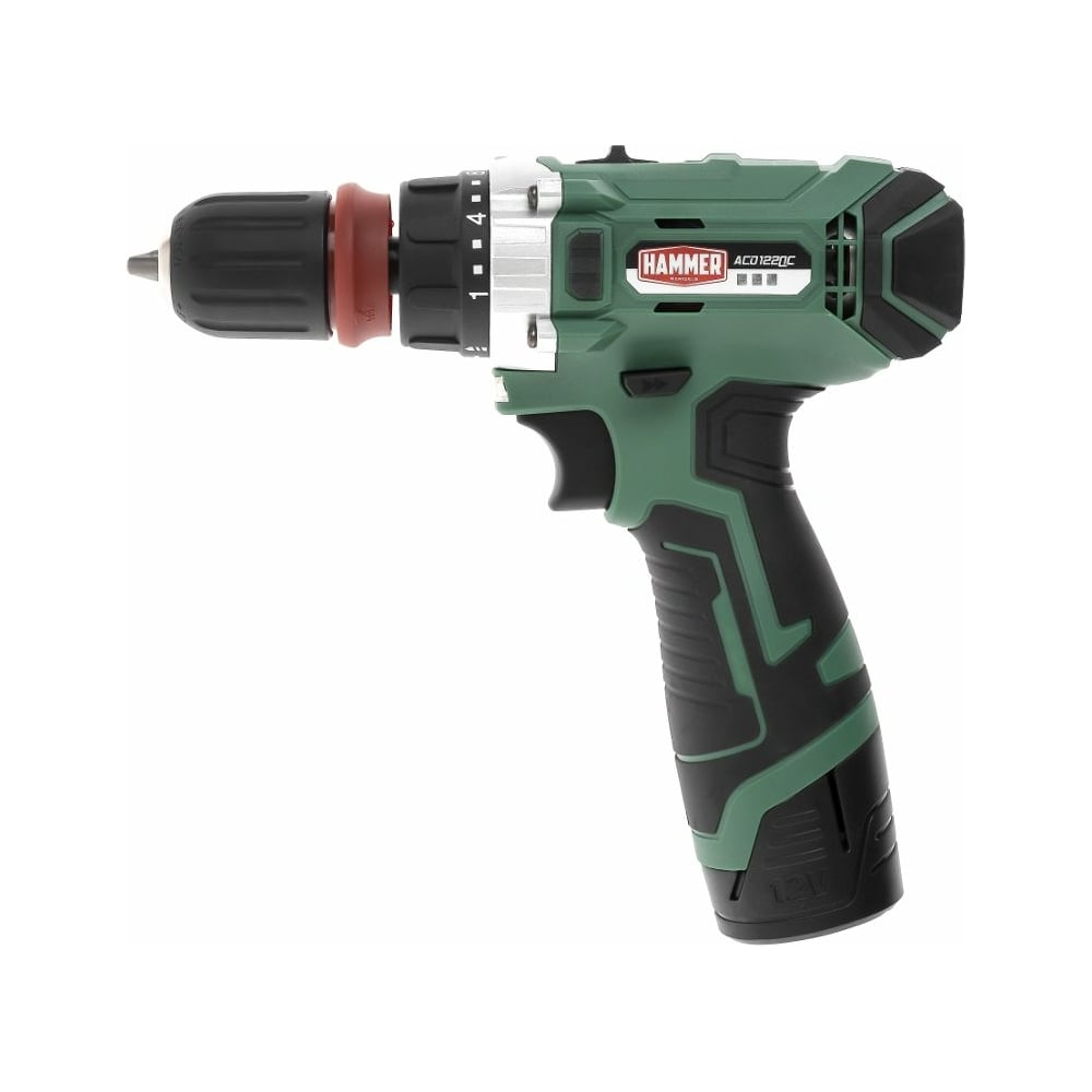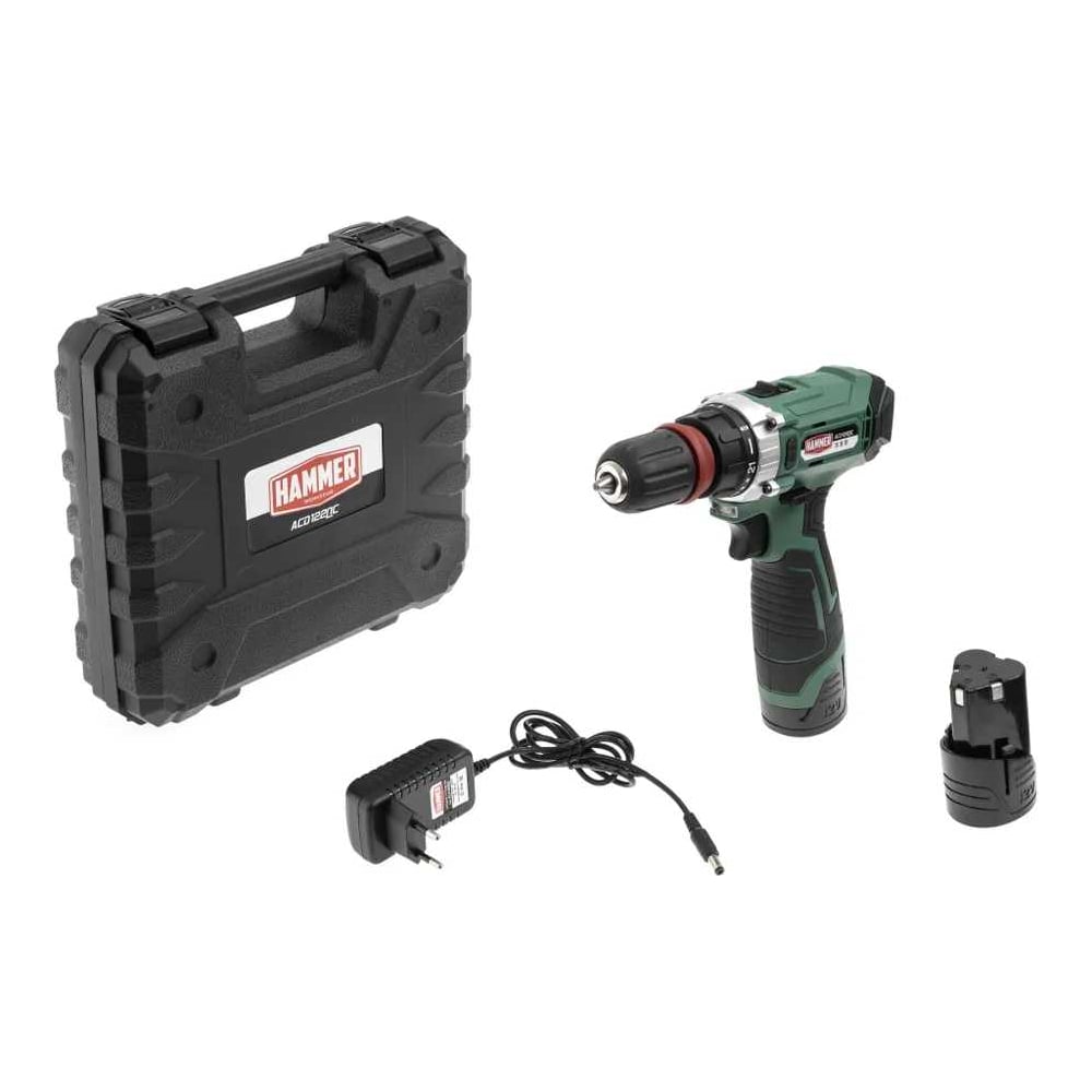 Аккумуляторная дрель Hammer 12 В, 2x2 Ач, Li-ION, 10 мм, 0-350/0-1400 об/мин, 28 Нм ACD122QC