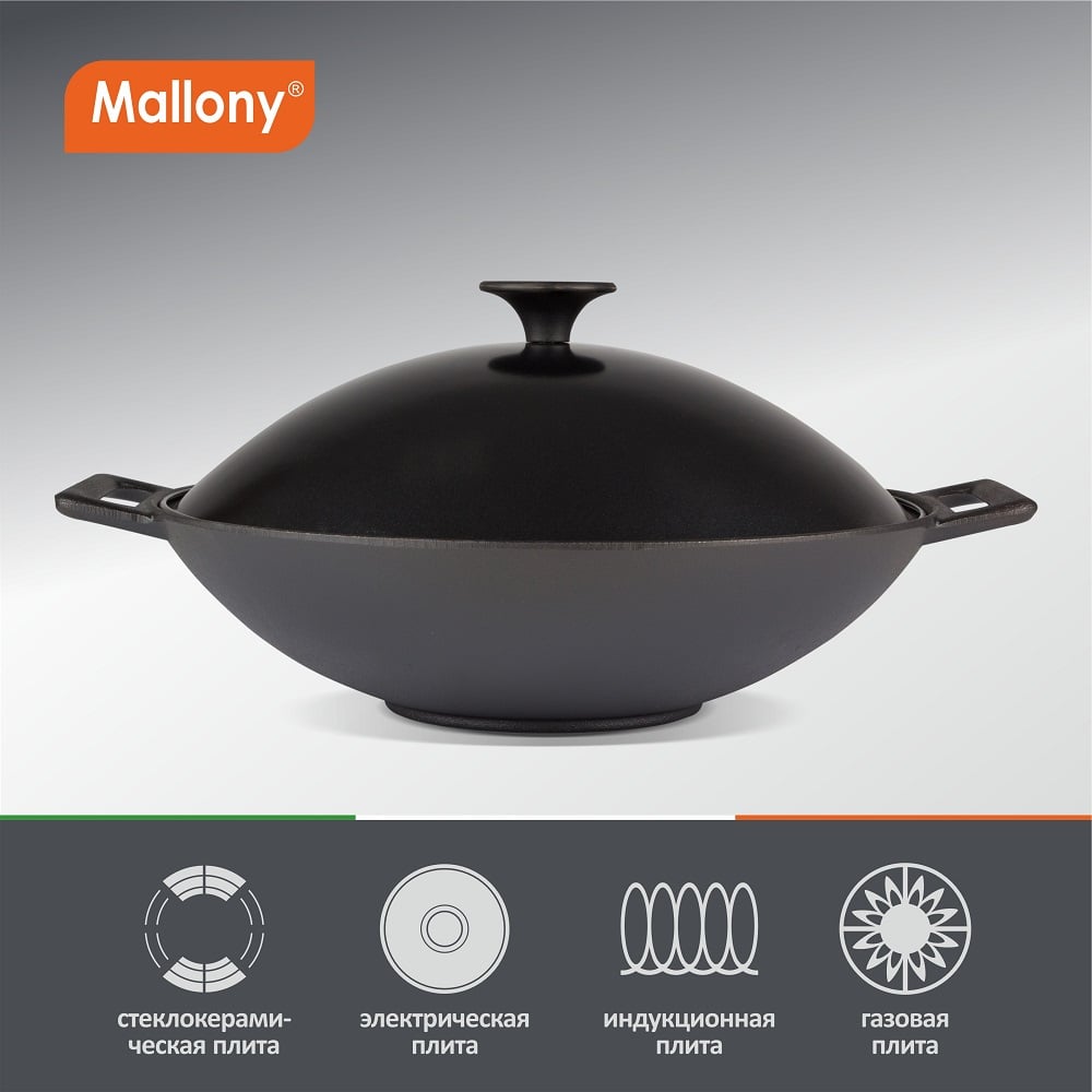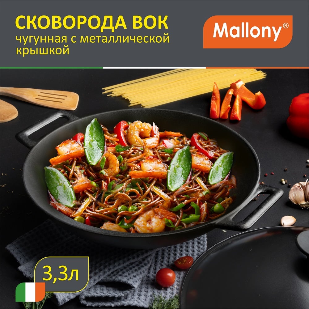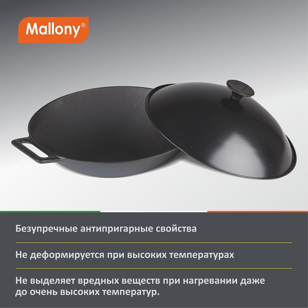 Чугунная сковорода Mallony ВОК объем 3,3 л W-31L диаметр - 31 см с металлической крышкой 985042