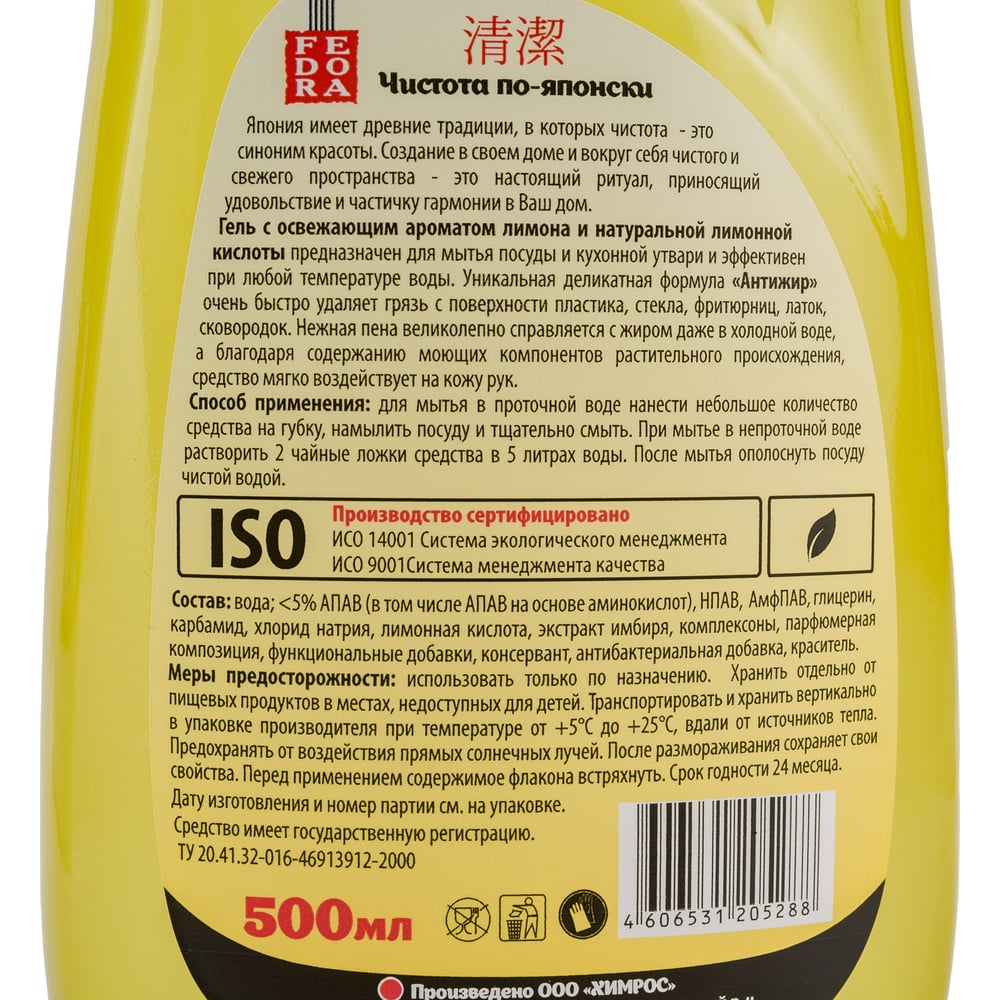 Гель для мытья посуды Fedora Лимон 500 мл 467