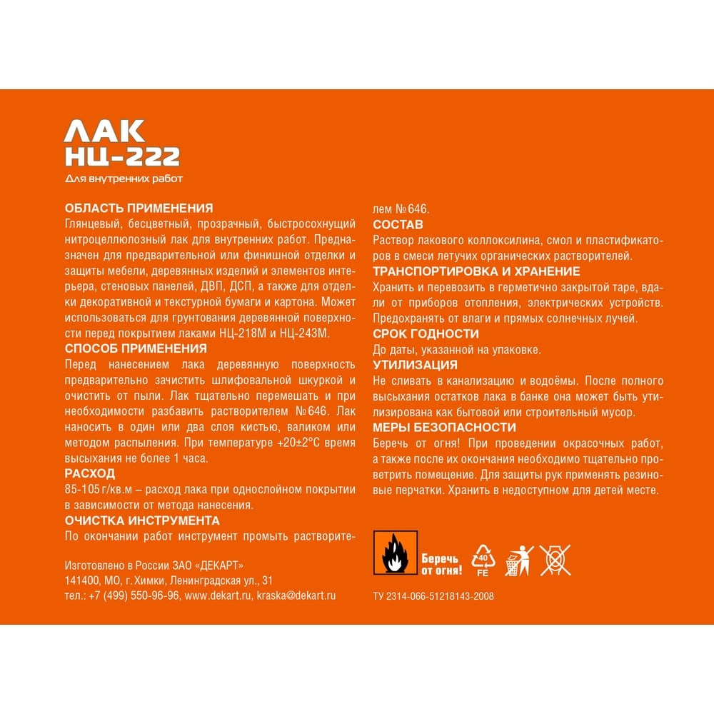 Лак для дерева Эксперт НЦ-222 22813