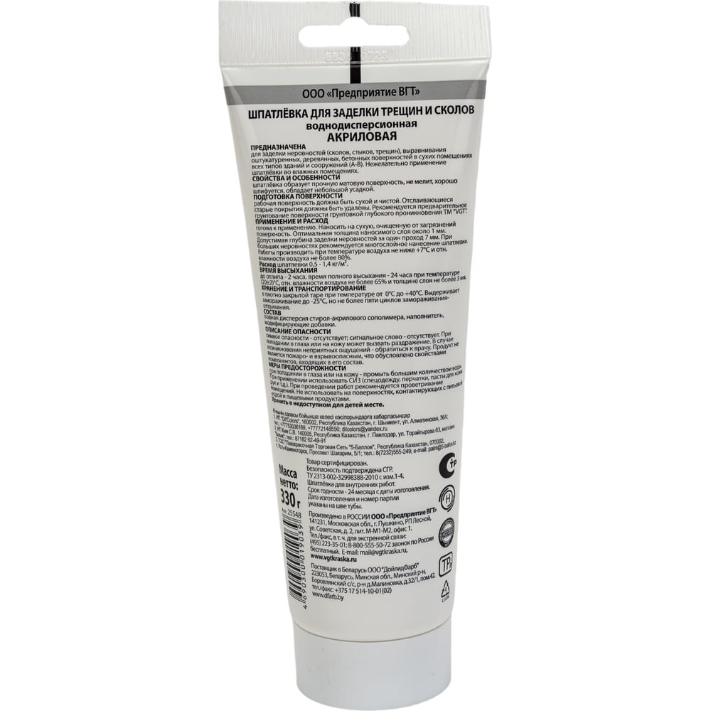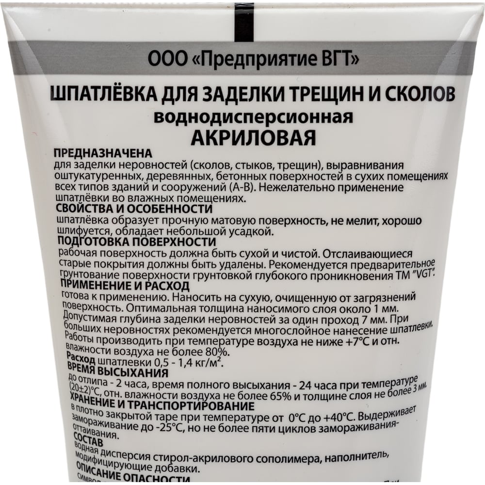 Акриловая шпатлевка для заделки трещин и сколов для внутренних работ VGT 11607361