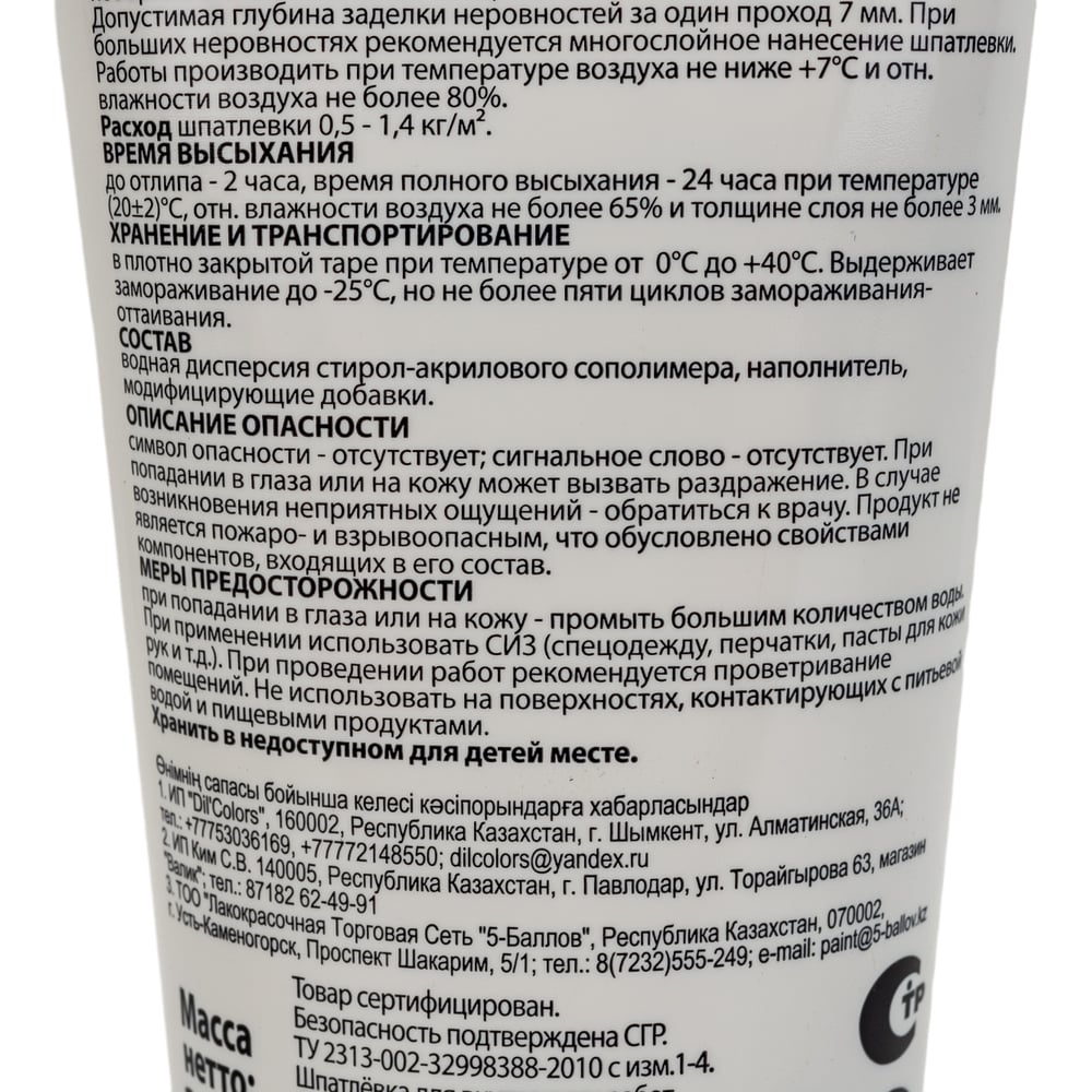 | Вид шпатлевки | универсальная |