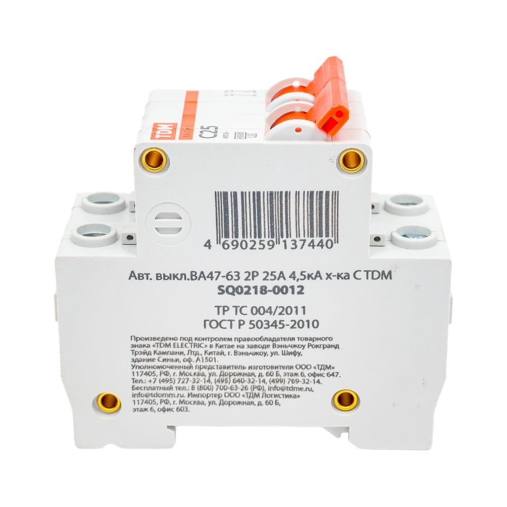 Автомат TDM ВА47-63 2Р, 25 А, 4,5 кА, С SQ0218-0012
