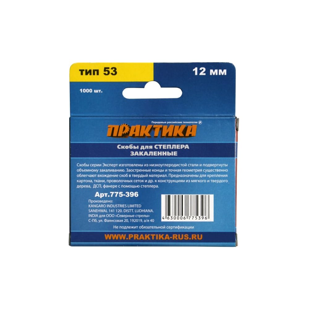 Скобы для степлера (1000 шт; 12х0.74х11.4 мм) ПРАКТИКА 775-396