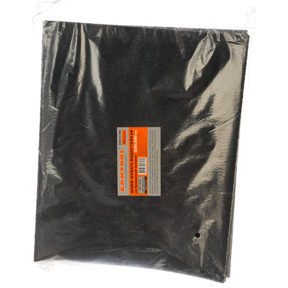 Шлифлист водостойкий на бумажной основе №40 (10 шт; 230х280 мм; Р40) SANTOOL 060212-004