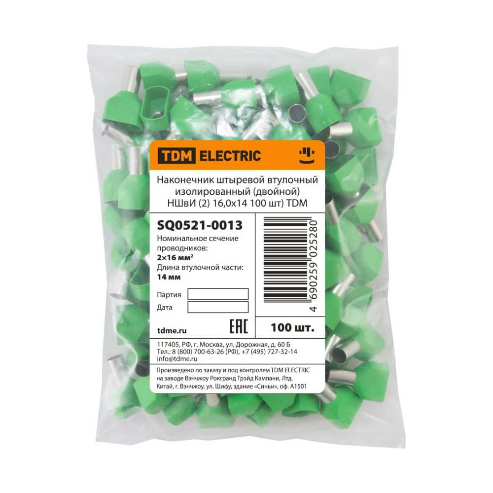Наконечник штыревой втулочный изолированный (двойной) НШвИ (2) 16,0х14 (100 штук) TDM ELECTRIC SQ0521-0013