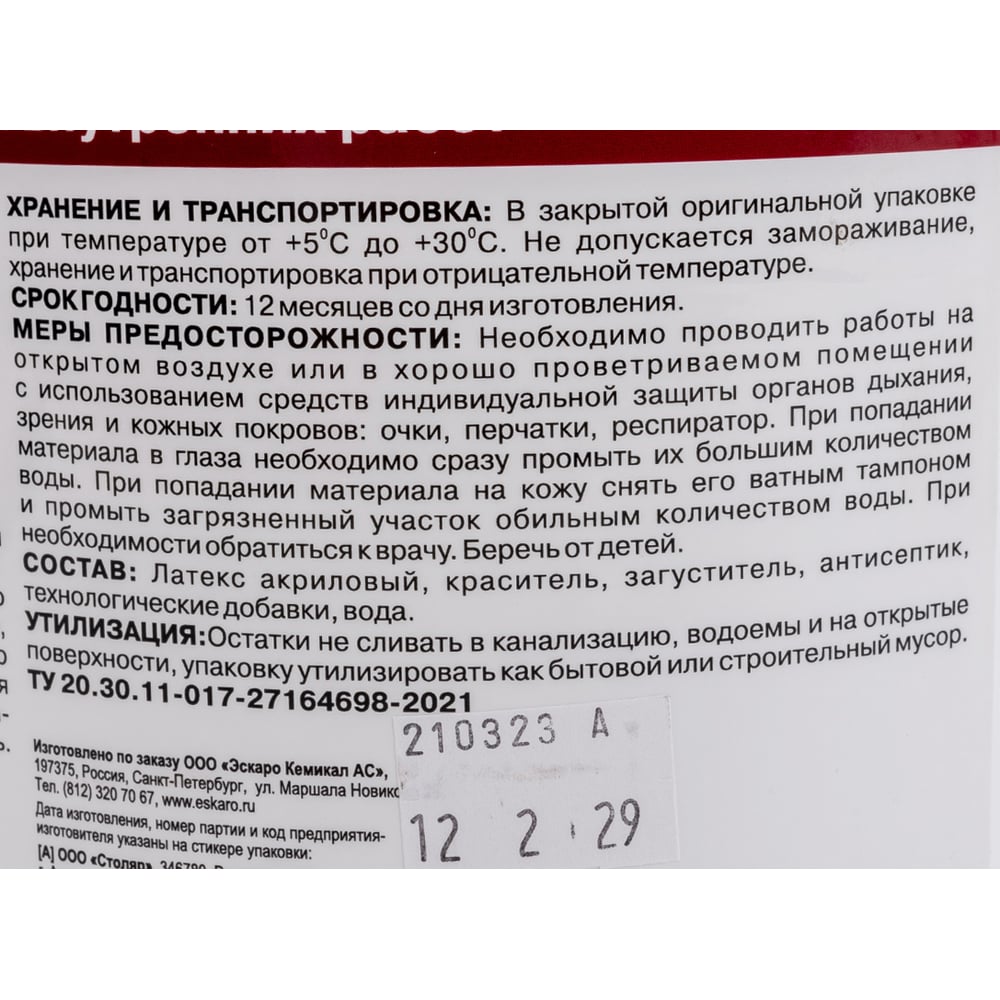 | Время полного высыхания | 12 ч |