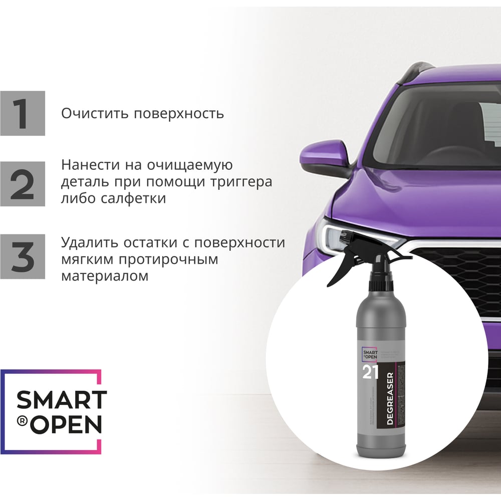 Профессиональный обезжириватель кузова автомобиля от жира, масла, силикона DEGREASER 21, 0,5 л Smart Open 152105