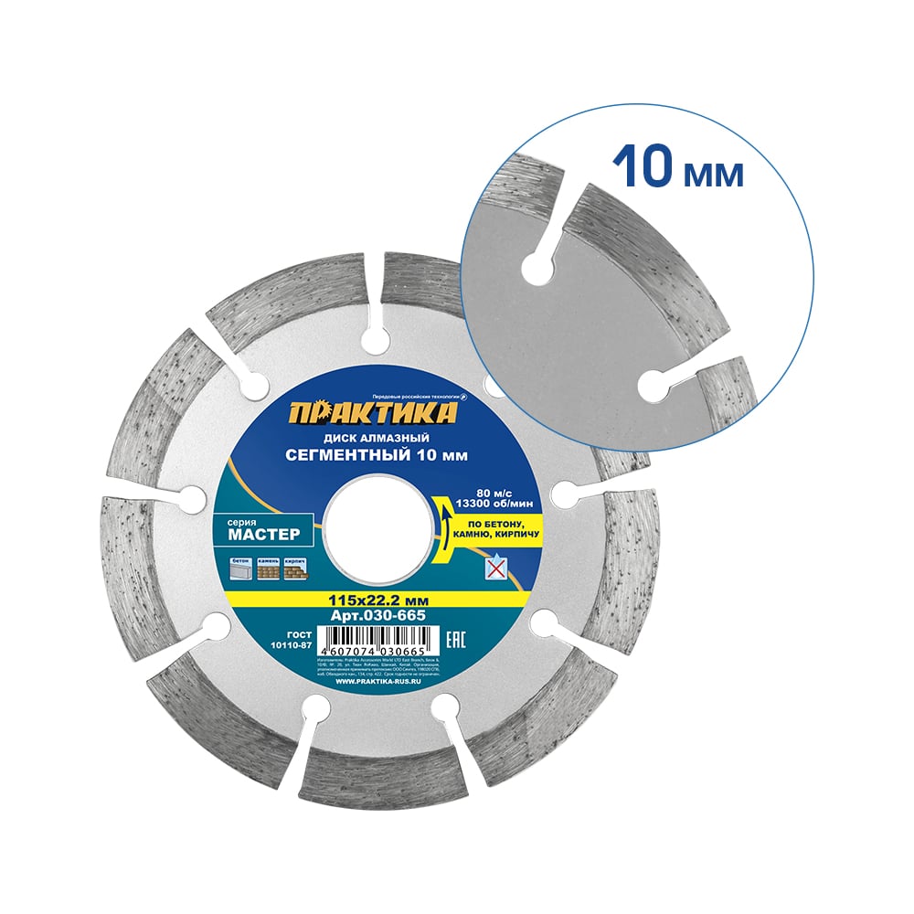 Диск алмазный сегментный Мастер (115х22.2 мм) ПРАКТИКА 030-665