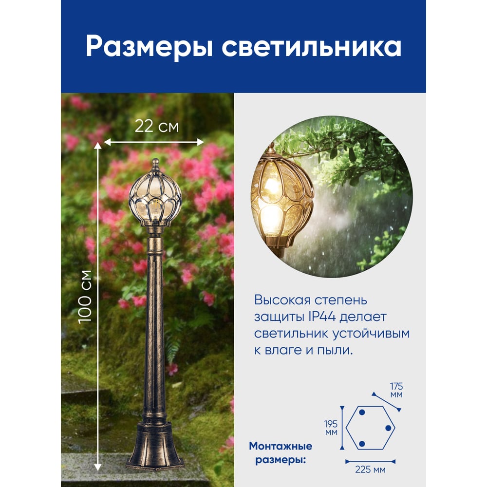 Садово-парковый светильник FERON PL3706 столб круглый 60W 230V E27, черное золото 11374