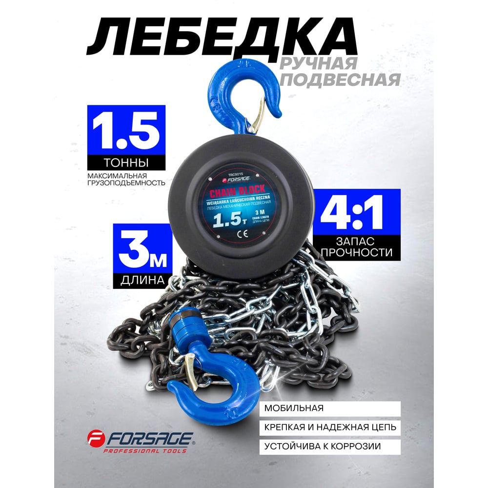 Механическая подвесная лебедка с фиксацией натяжения цепи 1.5 т, Forsage F-TRC9015(4671)