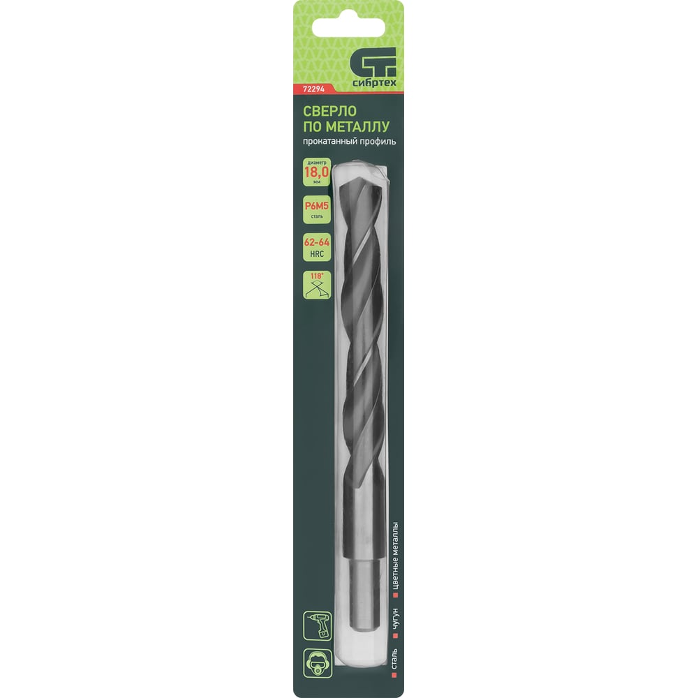 Сверло по металлу (18х191х130 мм; Р6М5) СИБРТЕХ 72294