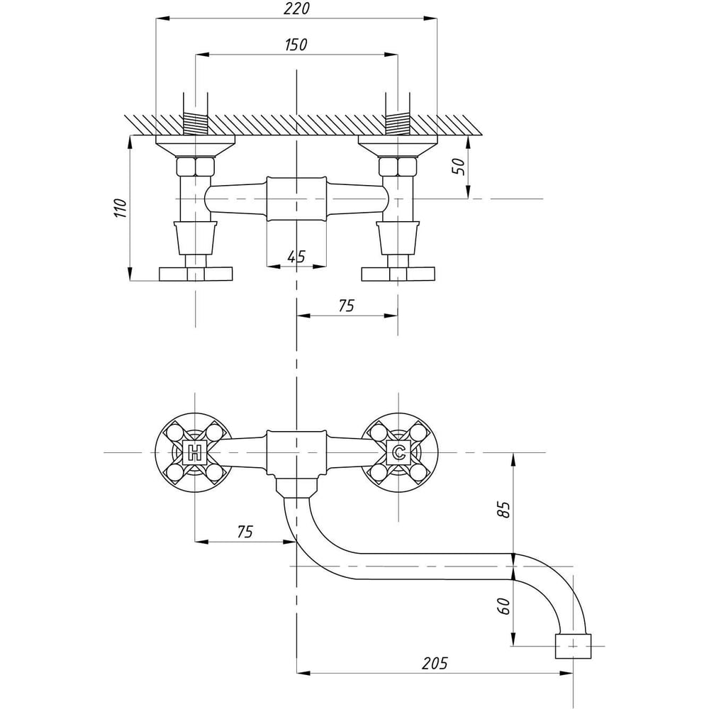 Смеситель для кухни TSARSBERG настенный тип См-МДРНА, См-УмДРНА TSB-08-88