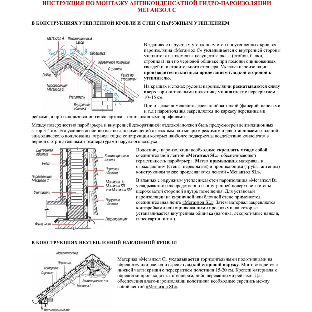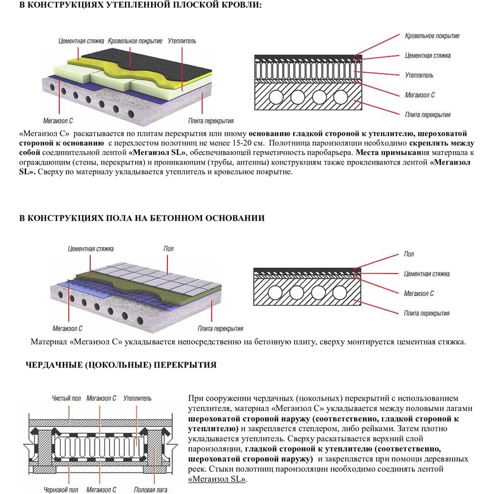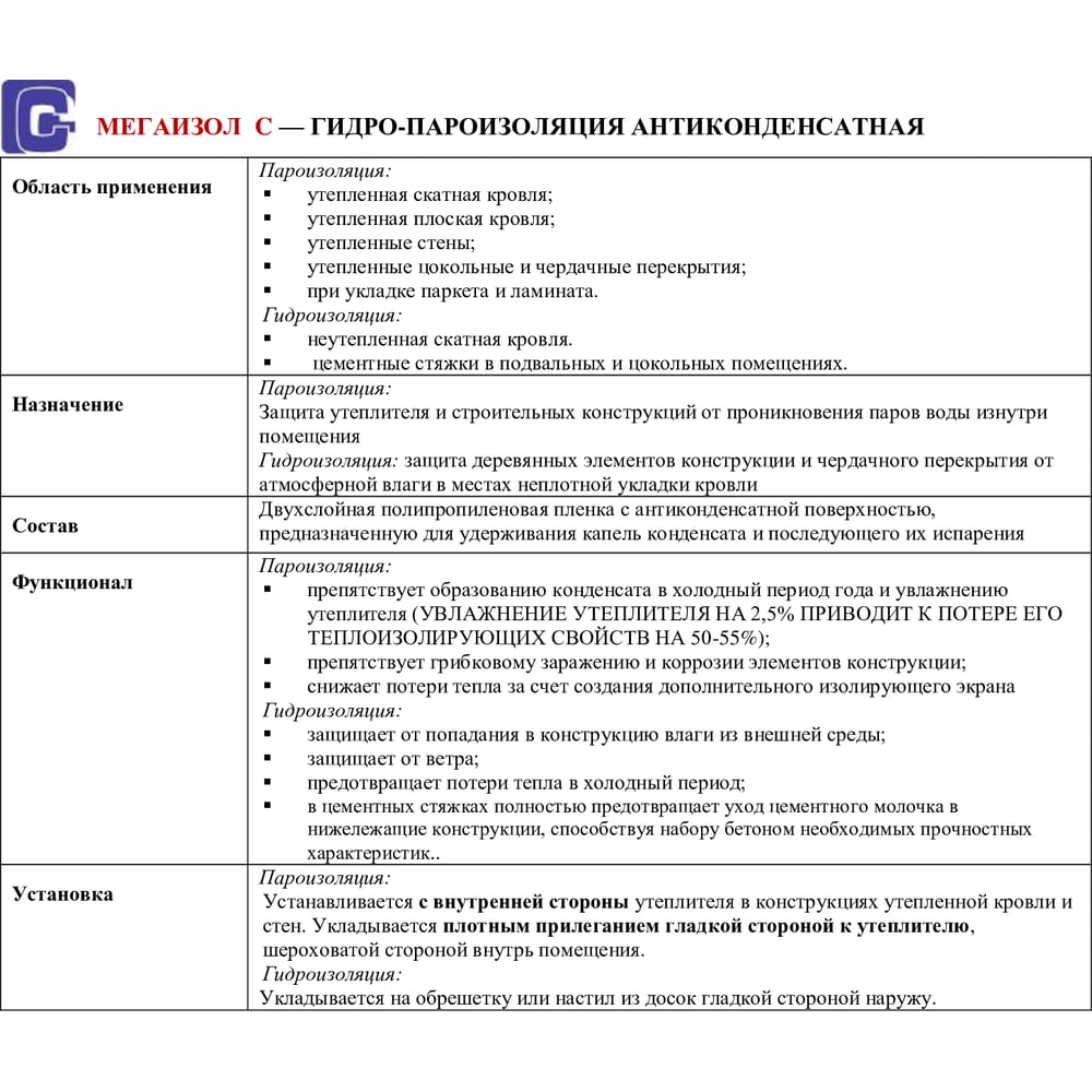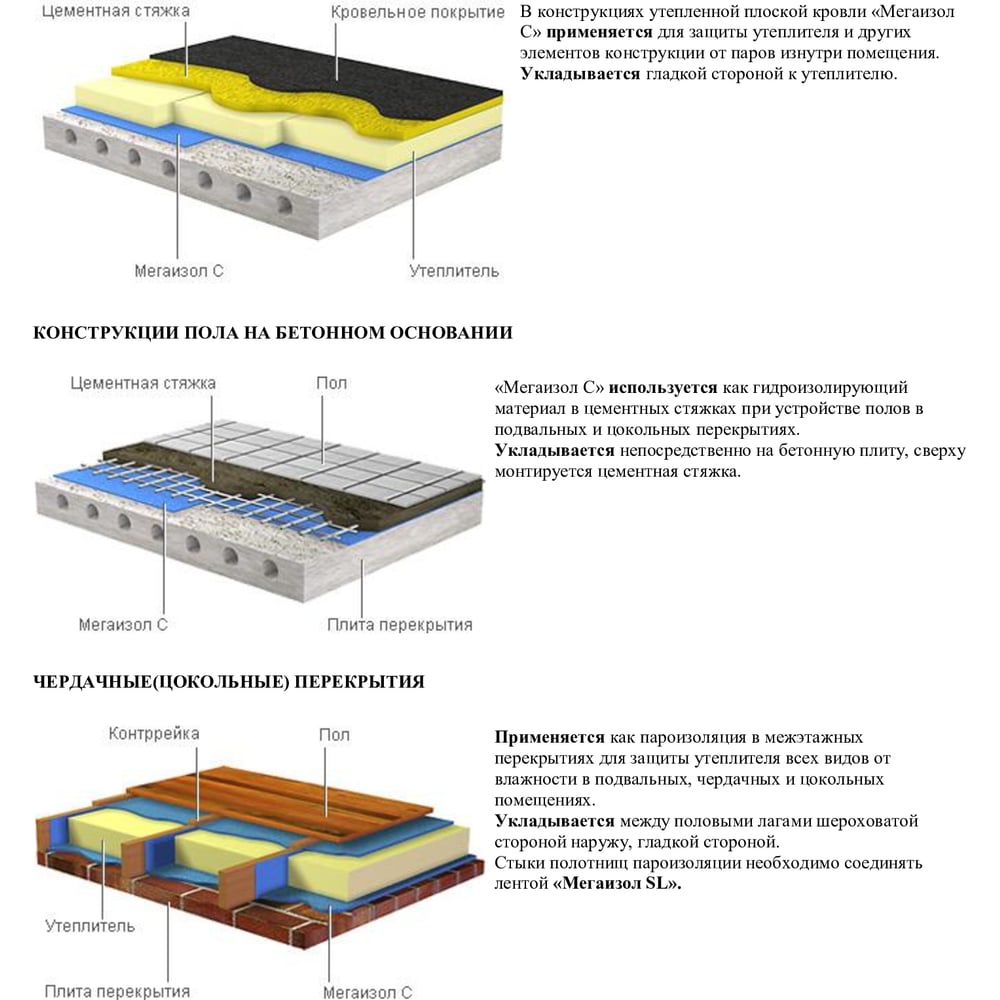 | Область применения | Гидро-пароизоляция |