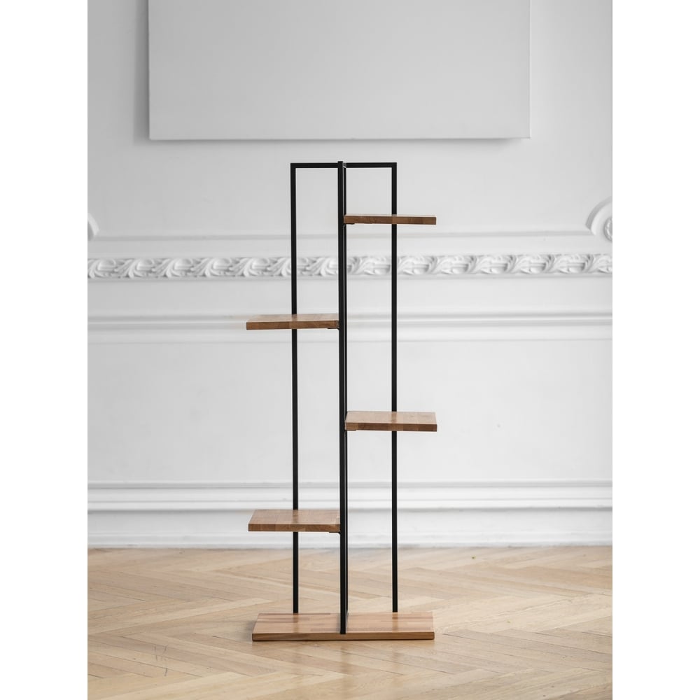 Высота 1310 мм Ширина 320 мм Цвет черный/дуб натуральный Тип стеллаж Класс товара Бытовой Вес нетто 11.3 кг Материал корпуса сталь Глубина 310 мм Материал каркаса дерево/сталь Кол-во полок/ярусов 5 шт