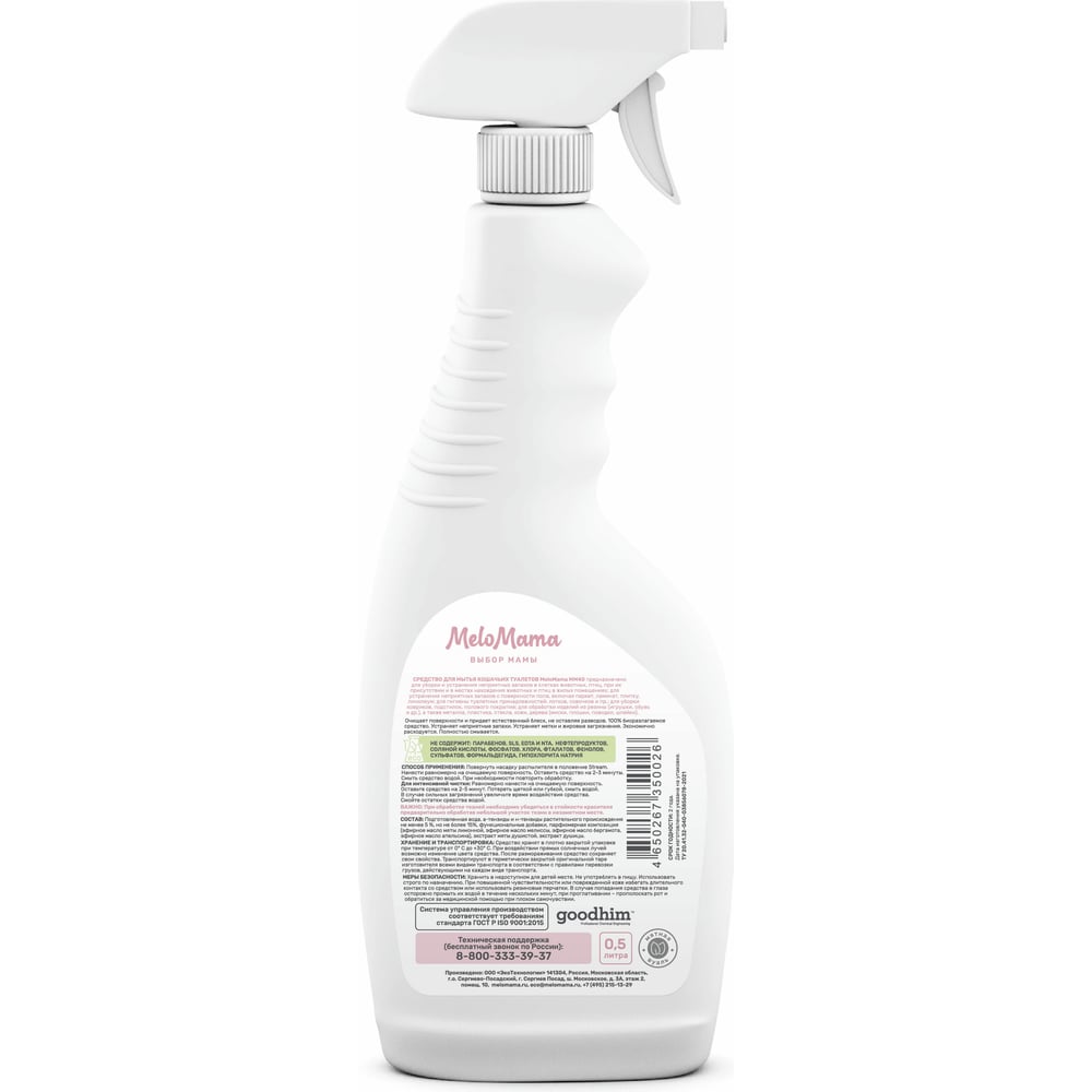Спрей для мытья кошачьих туалетов MeloMama Мятная вуаль, 0.5 л 50026