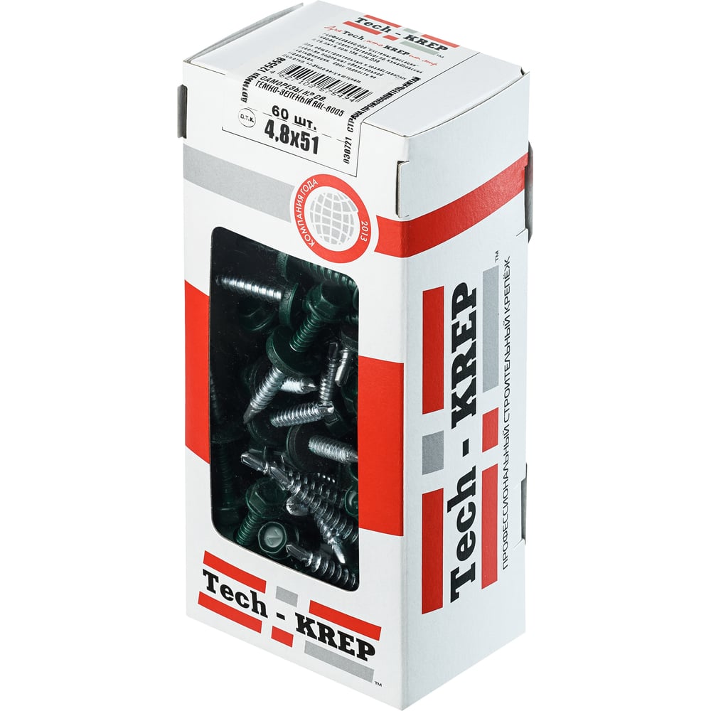 Кровельный саморез Tech-Krep КР сверло 4,8х51 RAL-6005 тёмно-зеленый 60 шт, коробка с окном 125558