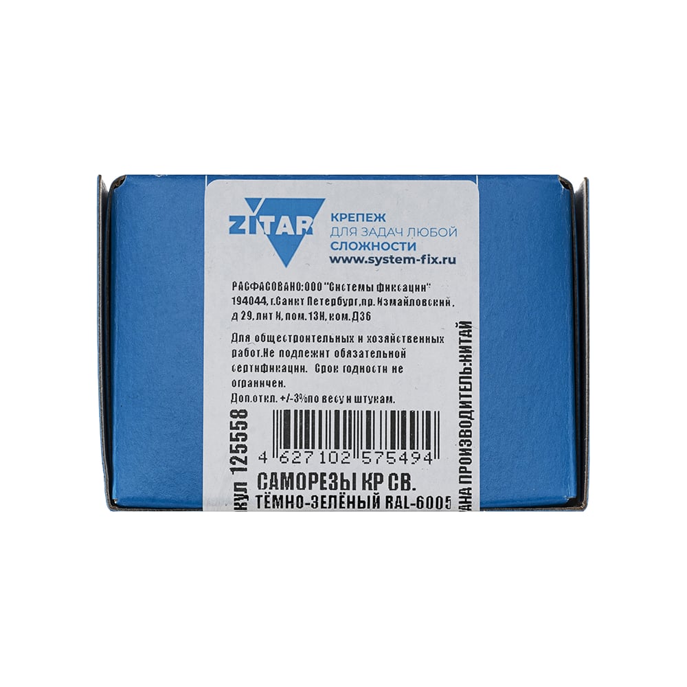 Саморез КР со сверлом, 4,8x51 мм, RAL-6005 темно-зеленый, 60 шт. в коробке с окном Zitar 125558