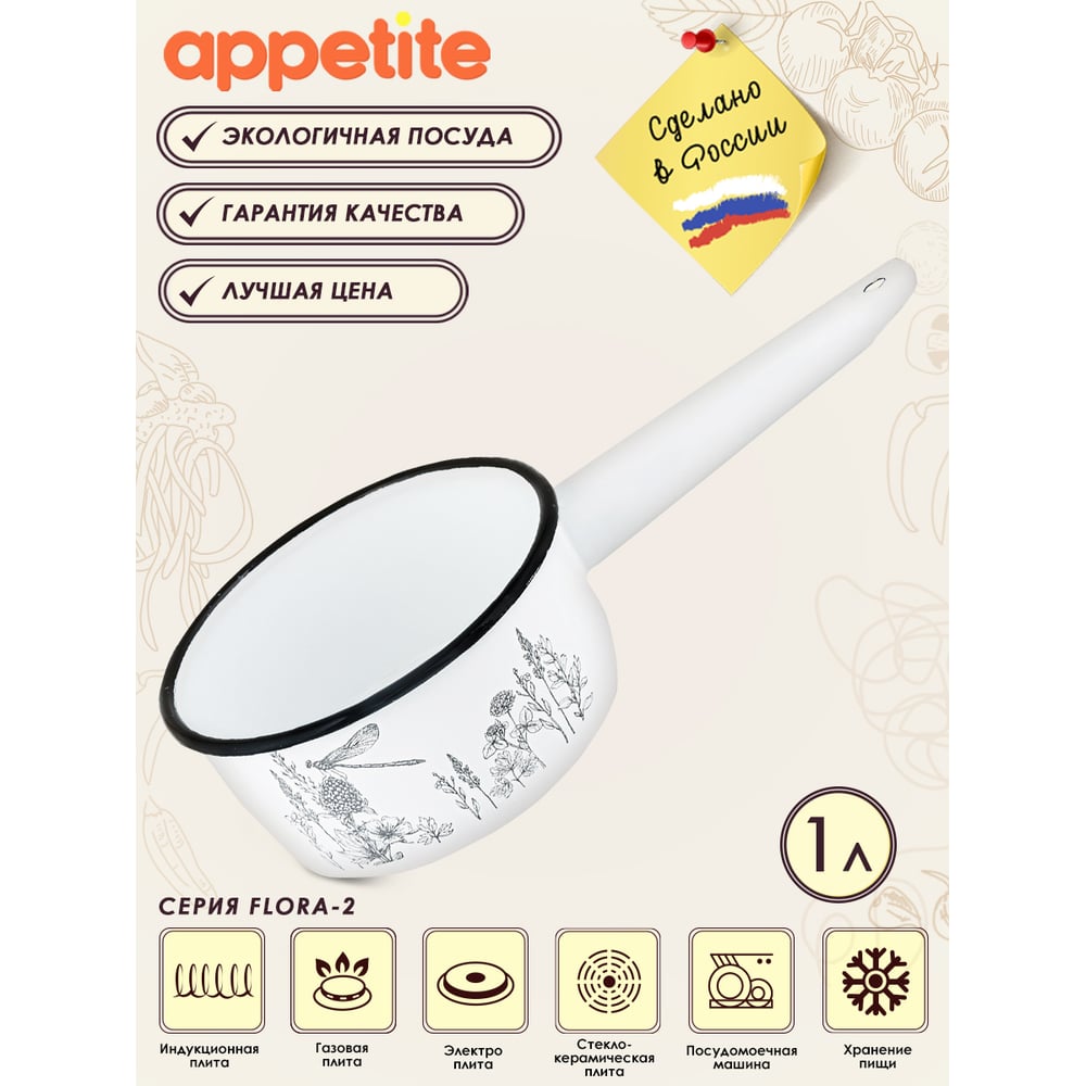 Эмалированный ковш appetite FLORA-2 1 л 1с22с FLORA
