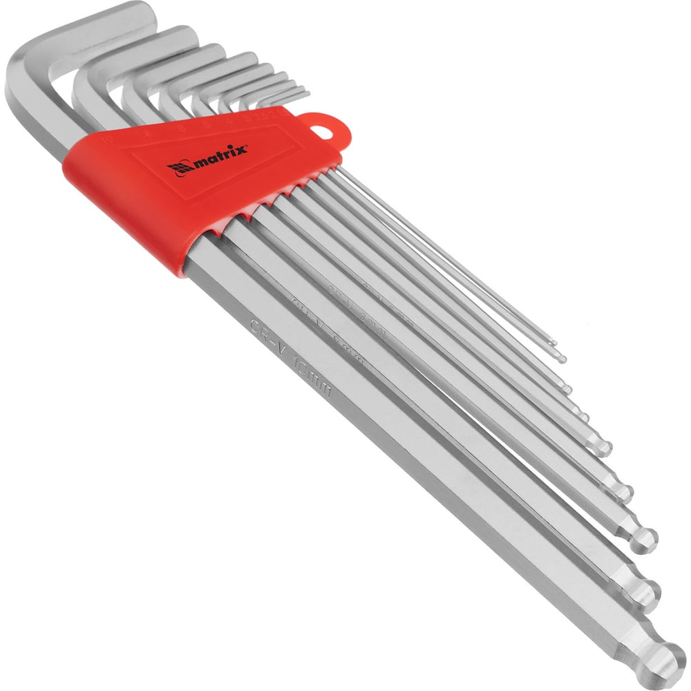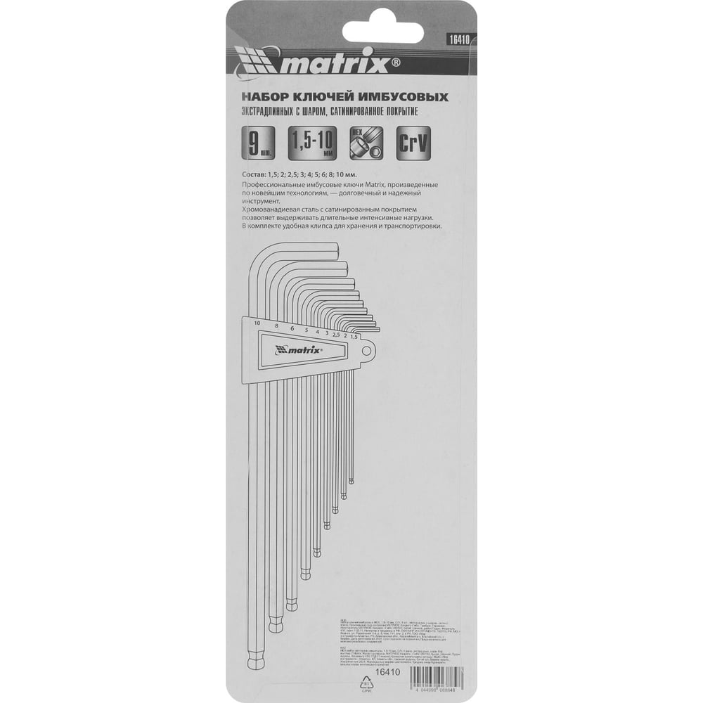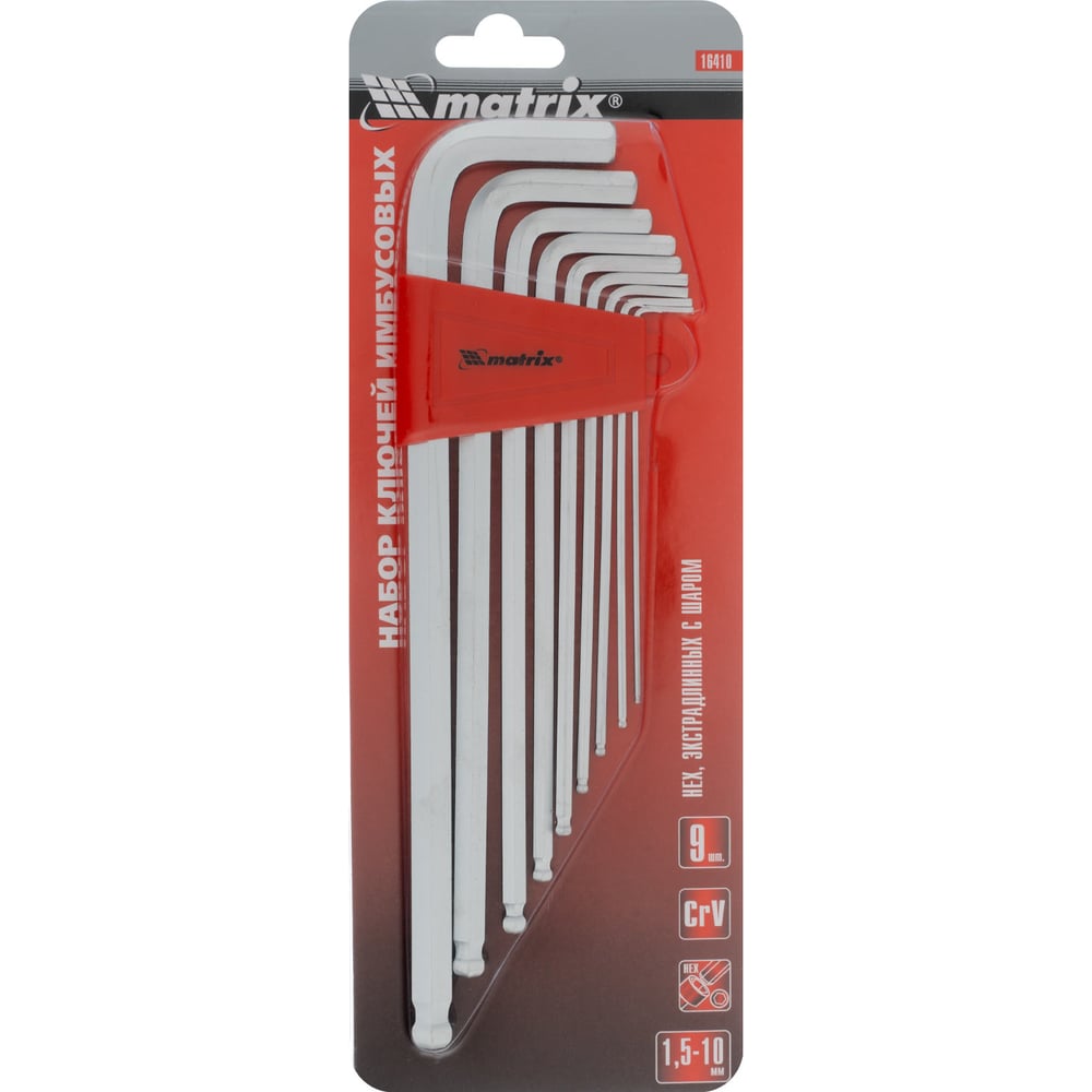 Набор имбусовых ключей MATRIX HEX 9 шт экстра-длинный с шаром 16410