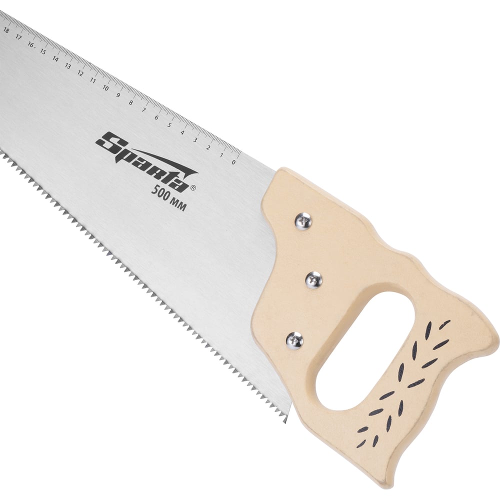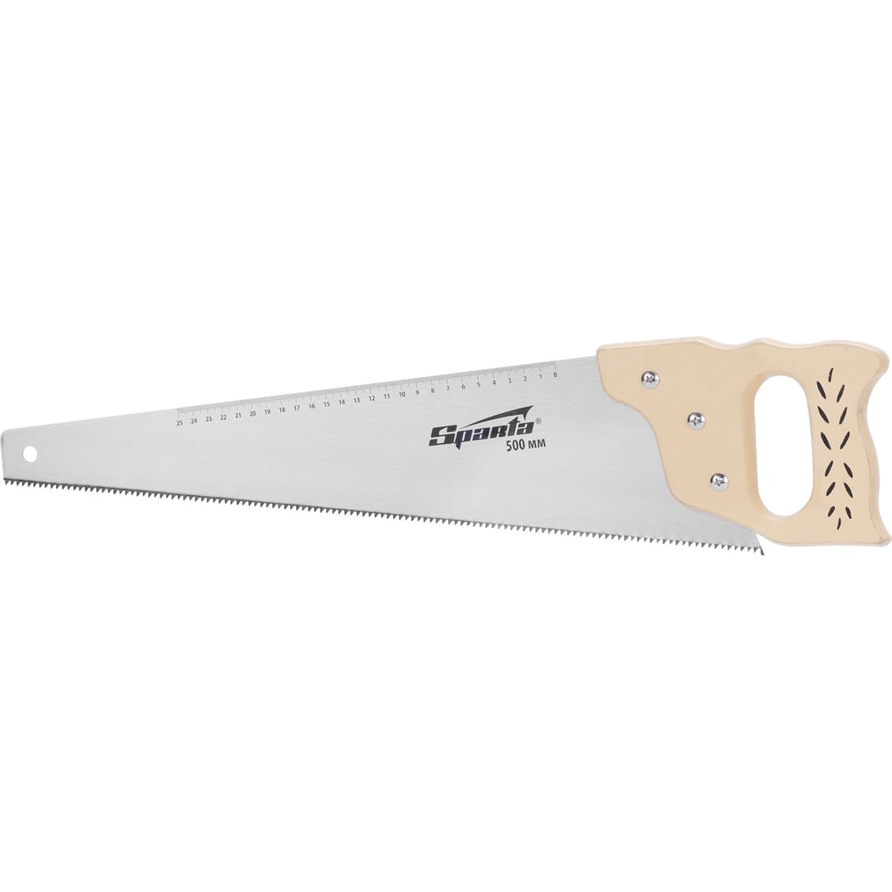 Ножовка по дереву SPARTA 400 мм, 7-8 ТРI, каленый зуб, линейка, деревянная рукоятка 231855