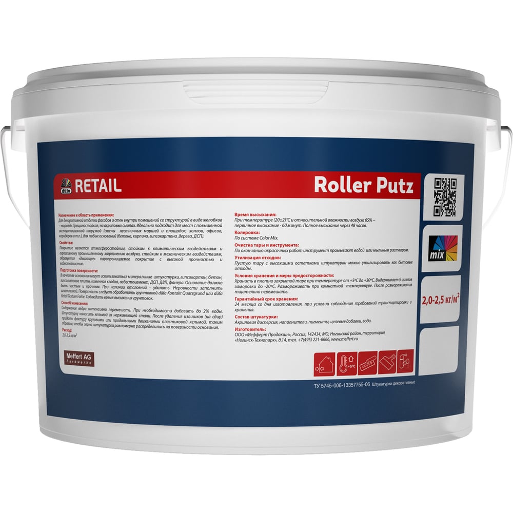 Декоративная штукатурка Dufa ROLLER PUTZ роллерная короед, зерно 2 мм, 15 кг Н0000004290