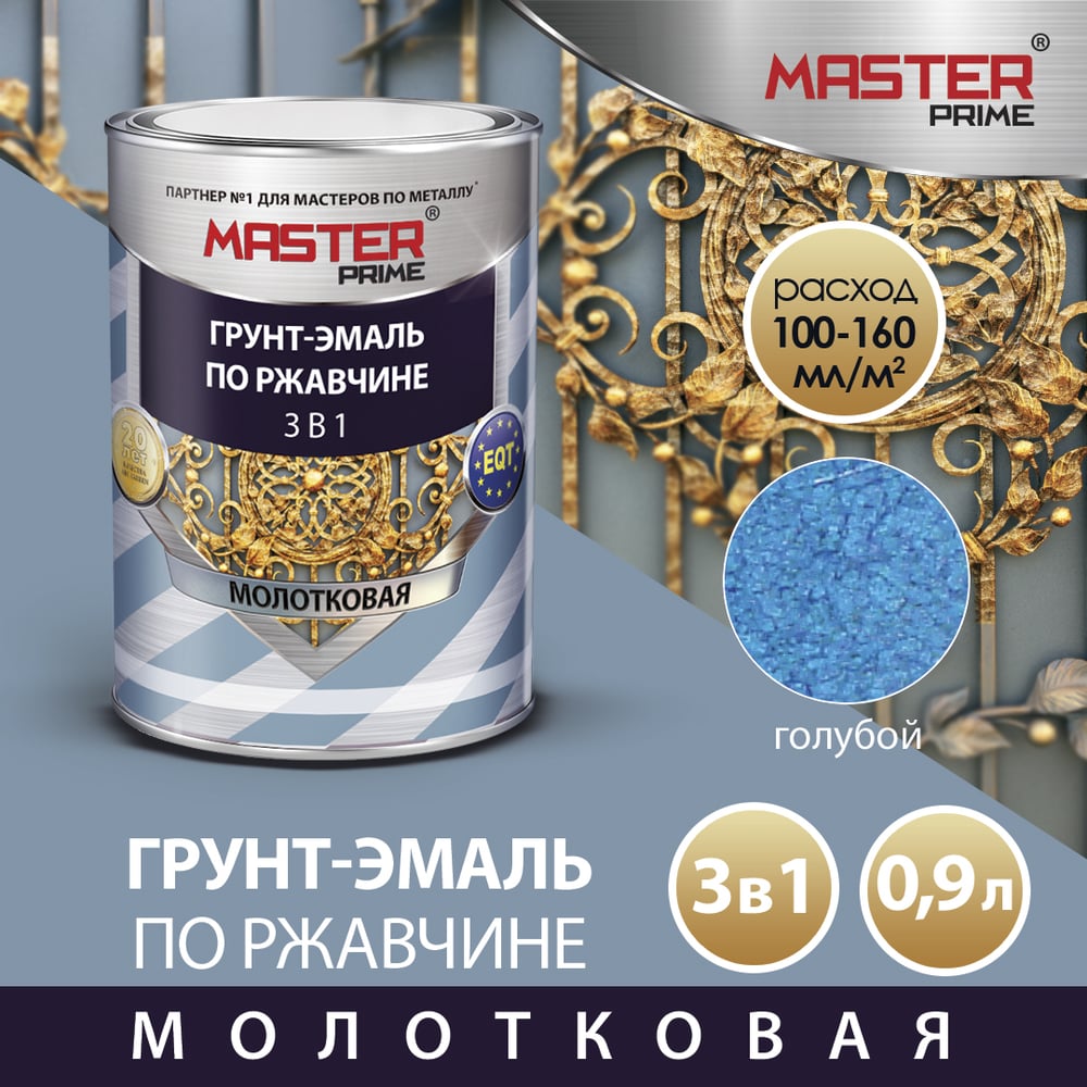 Грунт-эмаль по ржавчине MASTER PRIME 3 в 1 молотковая, голубой, 0.9 л 4300005027
